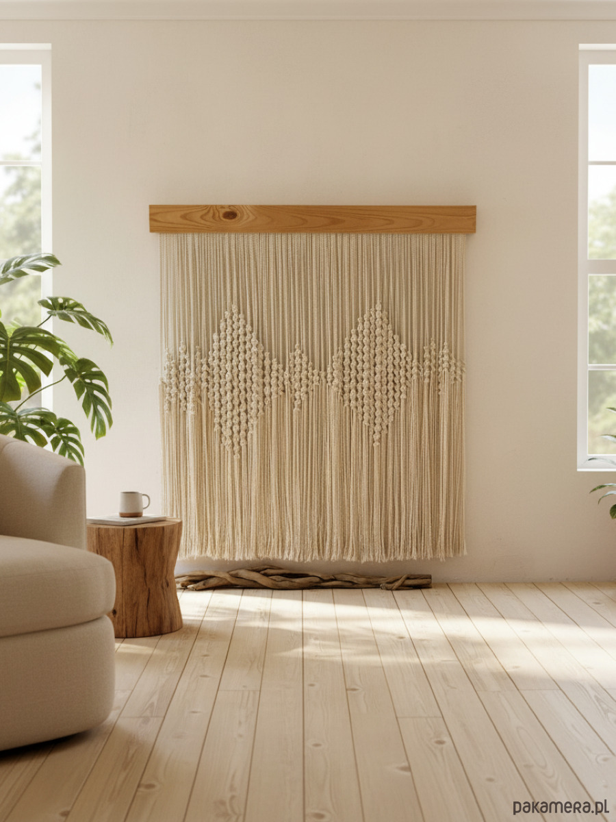 Modernistyczna makrama ścienna w stylu boho - wyjątkowa dekoracja do Twojego wnętrza!