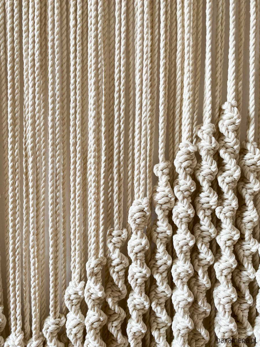 Niepowtarzalna makrama. Wykonana ze sznurka bawełnianego, 3 PLY o grubości 3 mm.