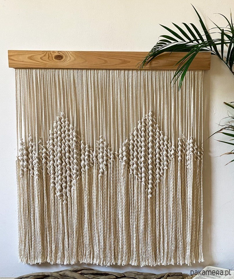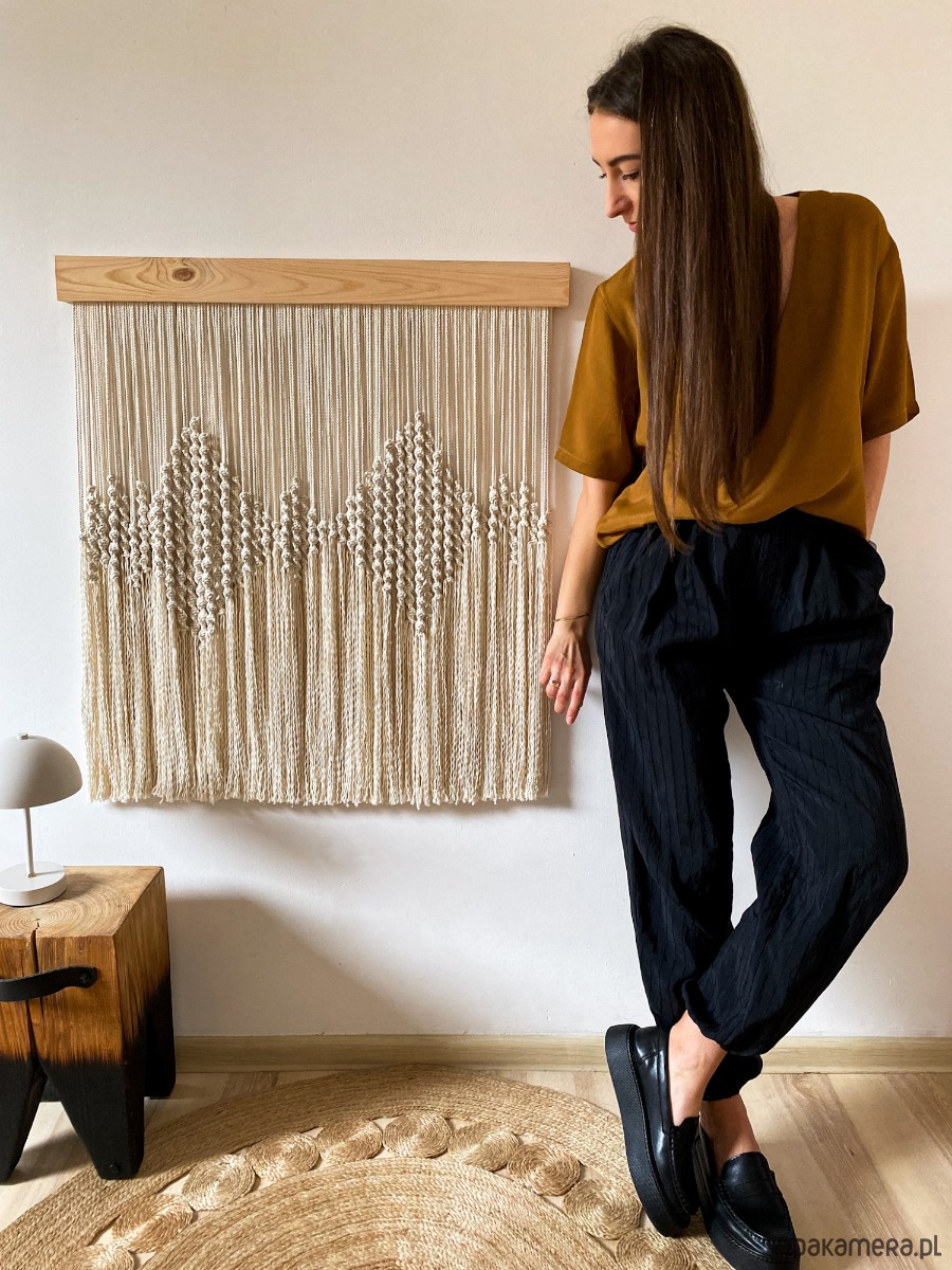 Dekoracja na ścianę wykonana ręcznie znaną od lat techniką makramy. Nowoczesny design w połączeniu z klasyką sprawia, że nasze makramy idealnie wpisują się w obecne trendy wnętrzarskie i pasują do każdego wnętrza. Mogą być doskonałym uzupełnieniem stylu boho, japandi czy skandynawski, ale również dodają harmonii i spokoju wnętrzom w nurcie etno czy minimalistyczym.