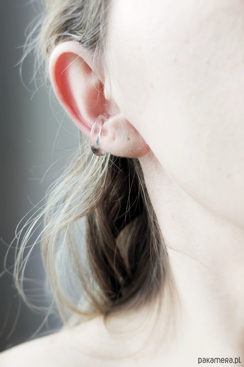 Minimalistyczna szklana nausznica w średnim rozmiarze. Prosta, lecz wyróżniająca się forma przypadnie do gustu miłośniczkom i miłośnikom klasycznych form biżuteryjnych. Do noszenia nausznic nie musisz mieć przekłutych uszu. To świetne rozwiązanie dla osób, które nigdy nie miały kolczyków a chciałyby nosić ozdoby na uszach.
