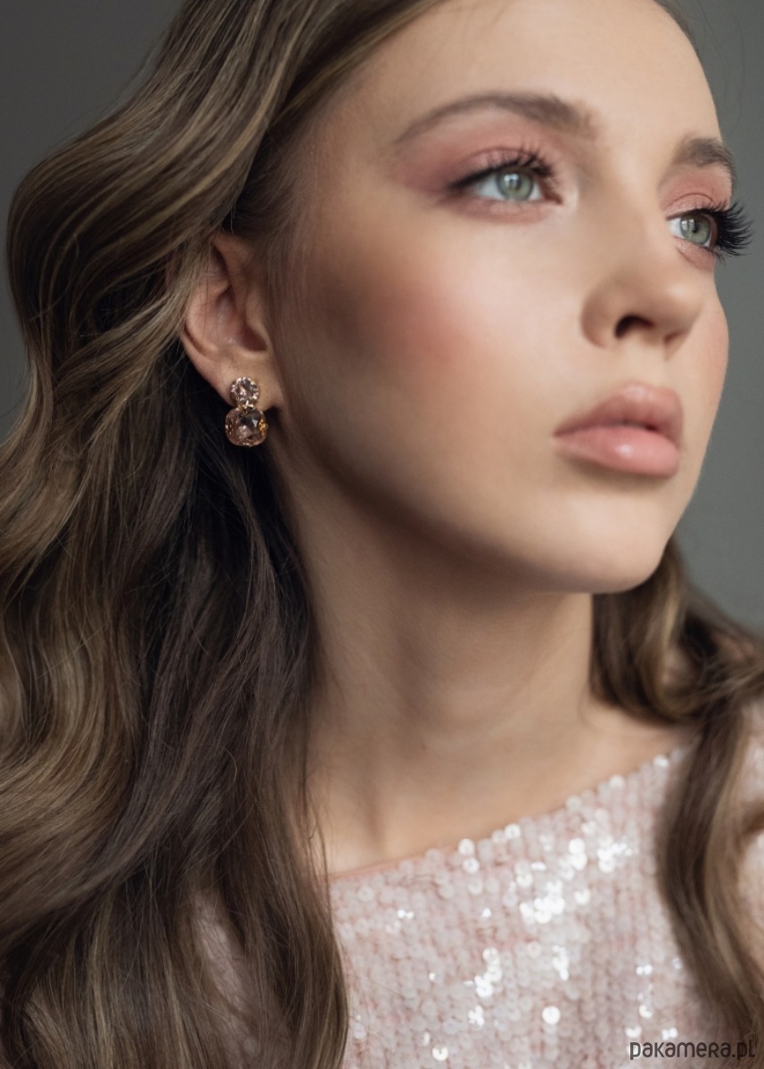 Niezwykły Duet Szlifów: Centralnym punktem jest połączenie dwóch kryształów Swarovski. Górny, mniejszy wprowadza delikatne lśnienie. Dolny, większy nadaje całości głębi i nowoczesnego charakteru.