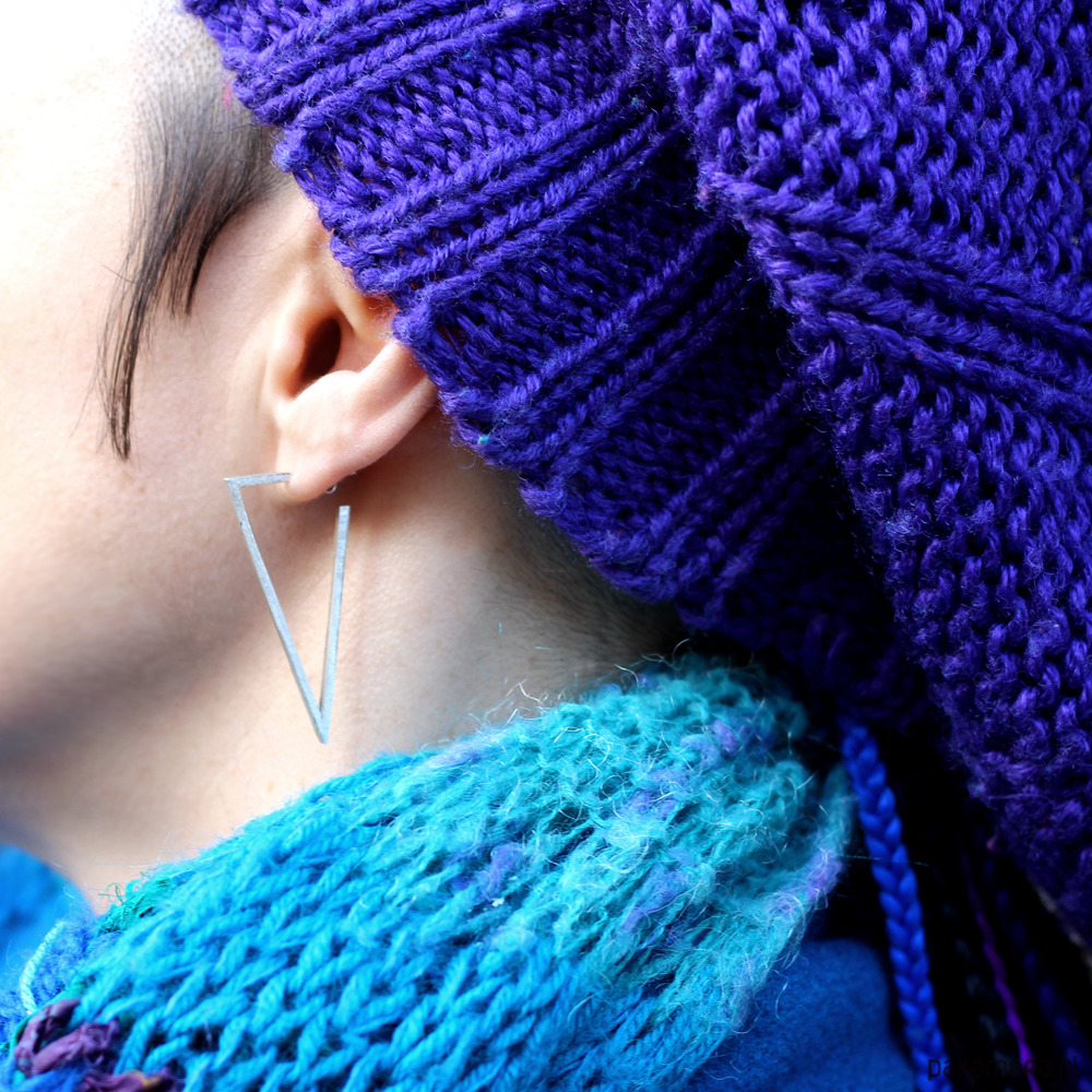 Kolczyki łączą w sobie rockowy, industrialny syl, prostą formę i awangardowy charakter.