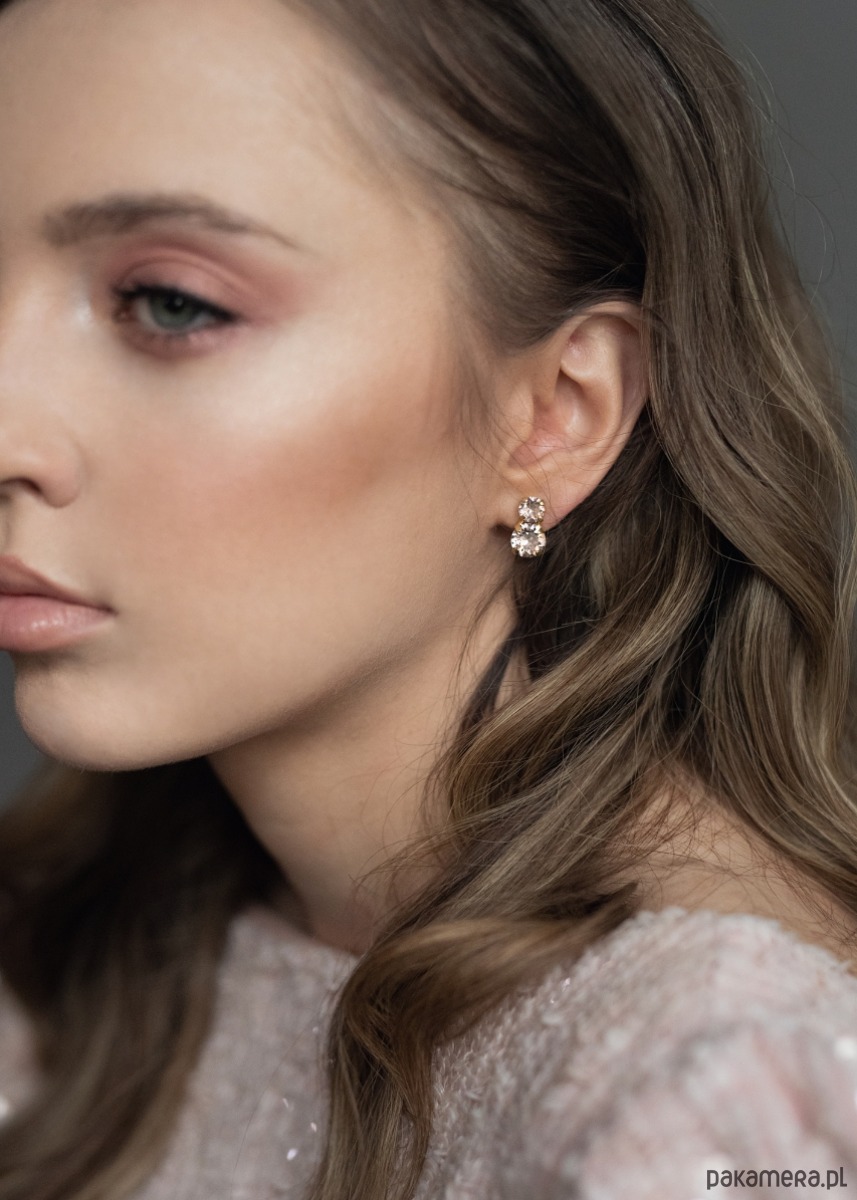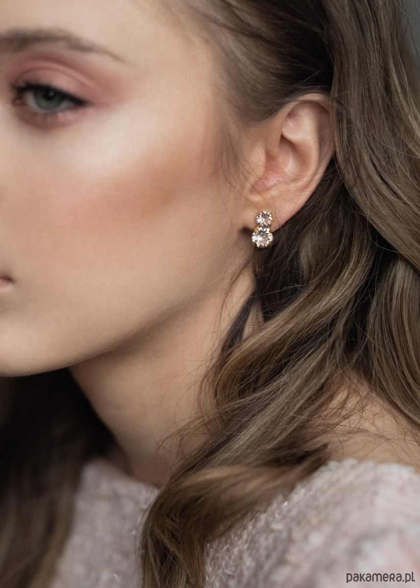 Magia Pudrowego Różu: Centralnym punktem są dwa precyzyjnie oszlifowane kryształy Swarovski. Ich unikalny, "zmrożony" odcień vintage pink przepięknie współgra z karnacją, dodając twarzy naturalnej świeżości i romantycznego wyrazu.