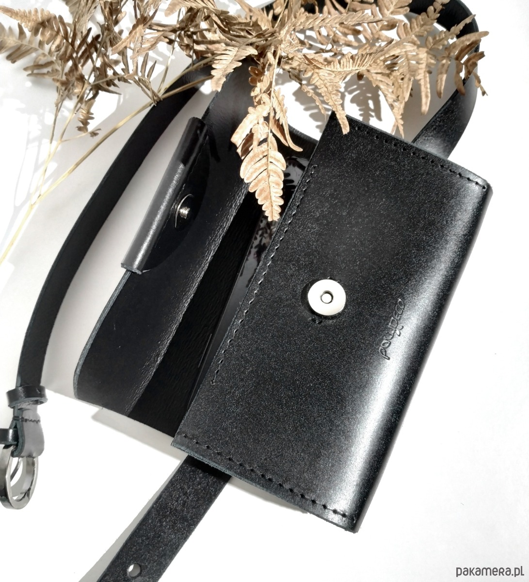 MINIMALISTYCZNE Saszetka z paskiem czarna skóra