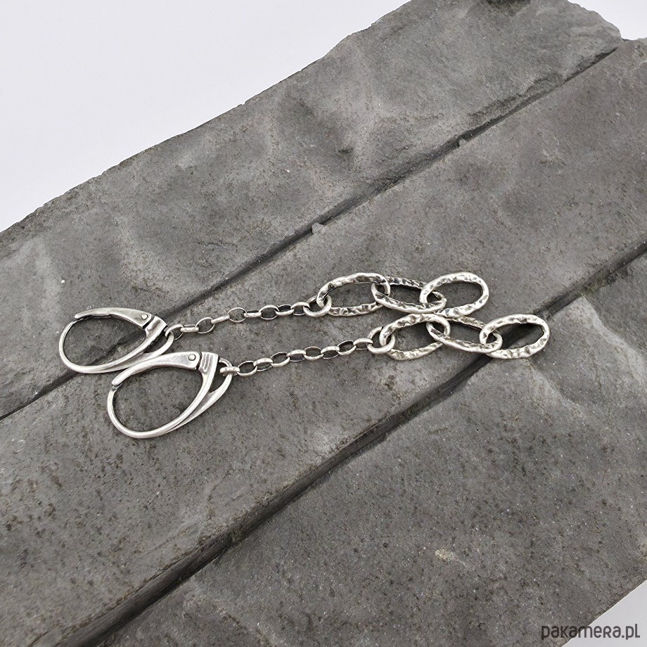Uniwersalne, subtelne i oryginalne kolczyki na co dzień i nie tylko. Wykonane w całości z oksydowanego srebra próby 925. Zapięcia zamykane angielskie. Całkowita długość kolczyków to ok. 7 cm. Niesamowicie lekkie i zwiewne. W mojej galerii bransoletka i naszyjnik do kompletu. Ozdobnie zapakowane.