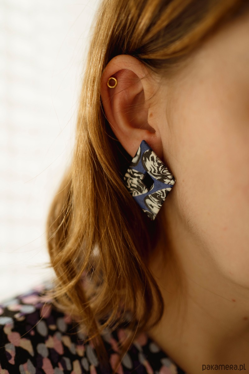 Kolczyki sztyfty w abstrakcyjnym kształcie w duchu Wiggly design. Każdy element jest wykonany, wycinany i szlifowany ręcznie z dbałością o każdy szczegół. Model ze zdjęcia ma charakter poglądowy. Każda para różni się nieznacznie wzorem od siebie - Magia rękodzieła!
