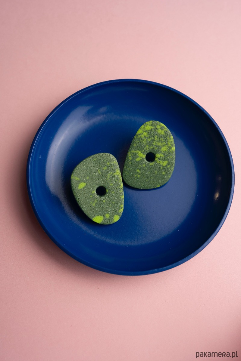 Kolczyki sztyfty w organicznym kształcie w abstrakcyjny wzór. Każdy element jest wykonany, wycinany i szlifowany ręcznie z dbałością o każdy szczegół. Wzór ze zdjęcia jest wzorem poglądowym, zawsze wychodzi inaczej - magia rękodzieła.