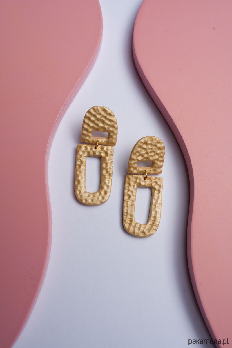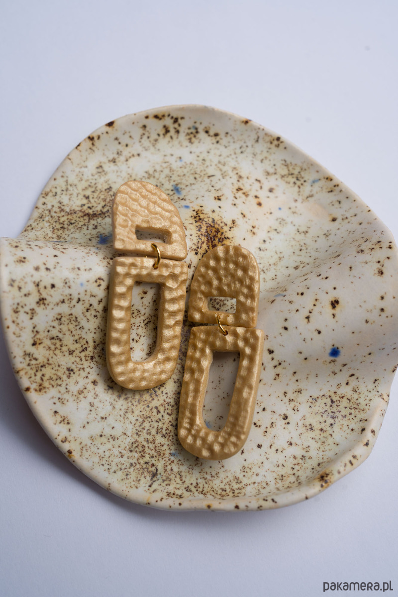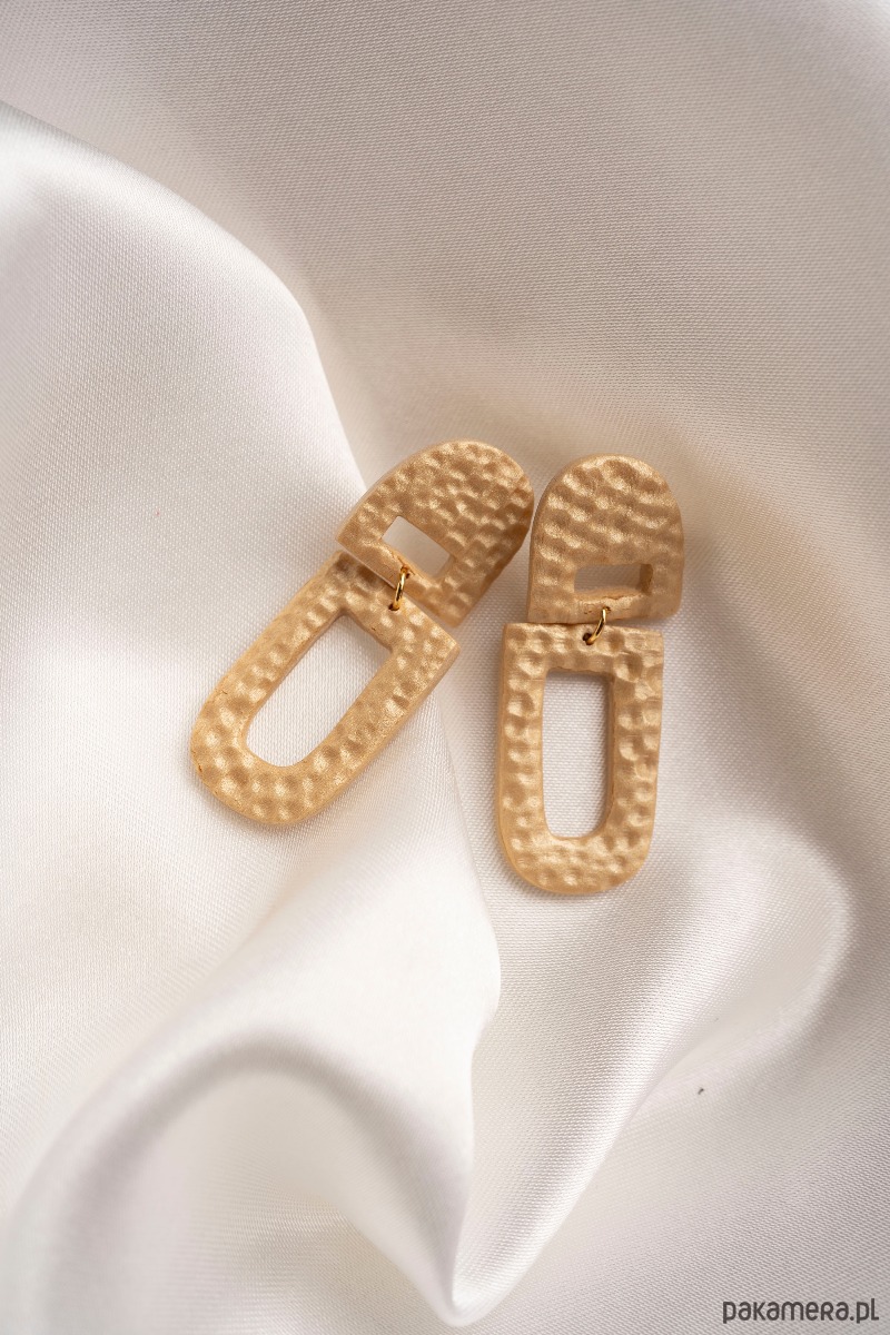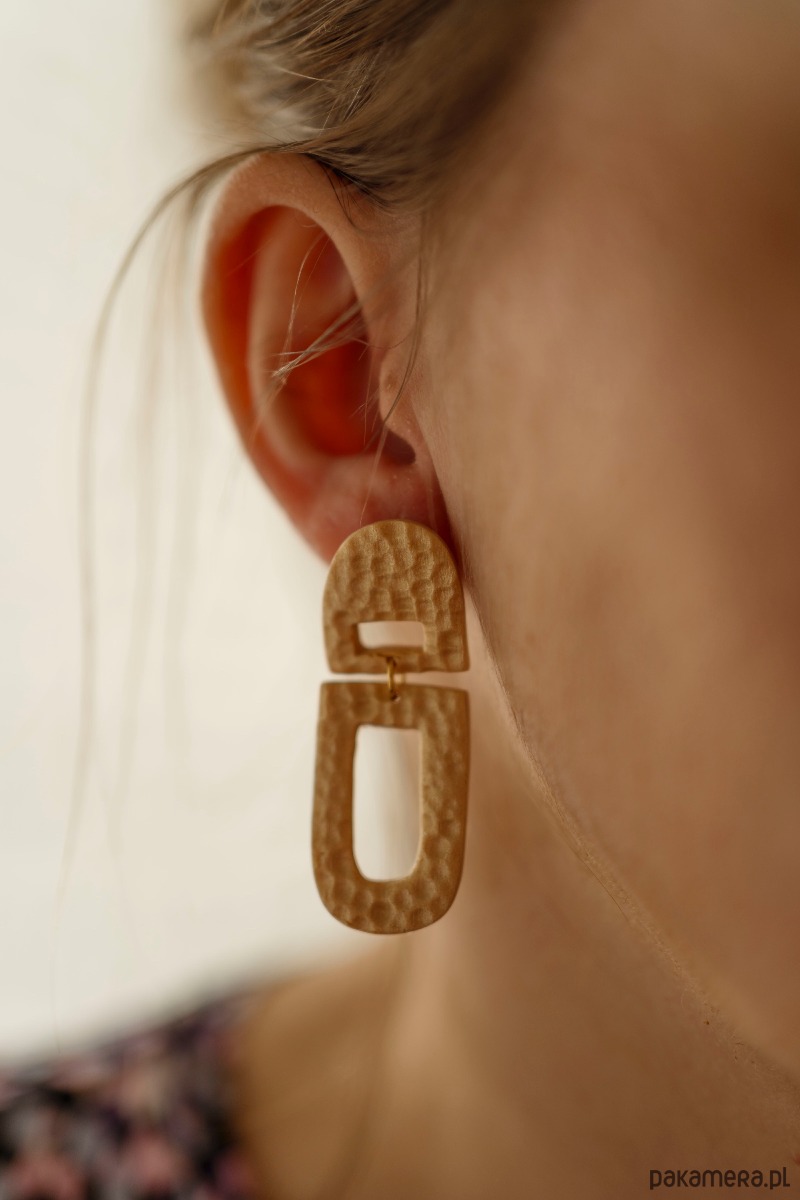 Kolczyki sztyfty w organicznym kształcie z gniecioną fakturą. Każdy element jest wykonany, wycinany i szlifowany ręcznie z dbałością o każdy szczegół.