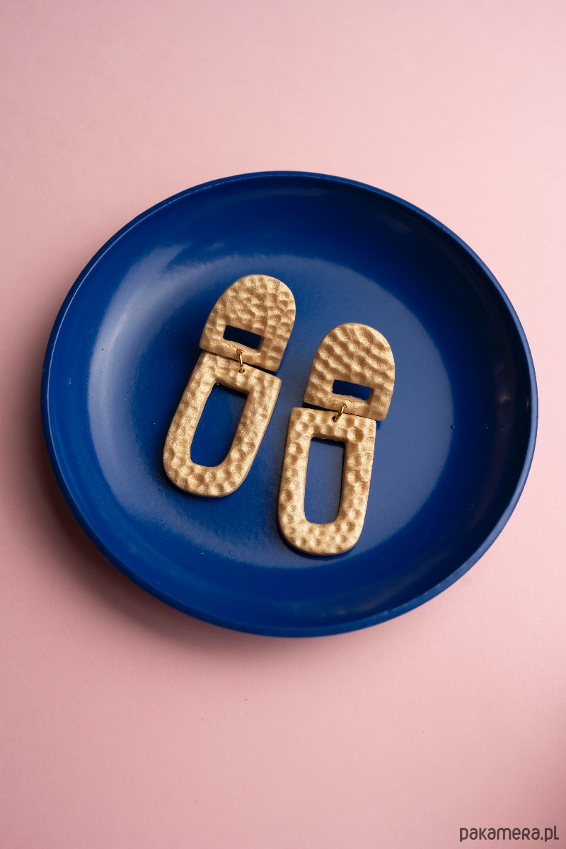 Kolczyki sztyfty w organicznym kształcie z gniecioną fakturą. Każdy element jest wykonany, wycinany i szlifowany ręcznie z dbałością o każdy szczegół.