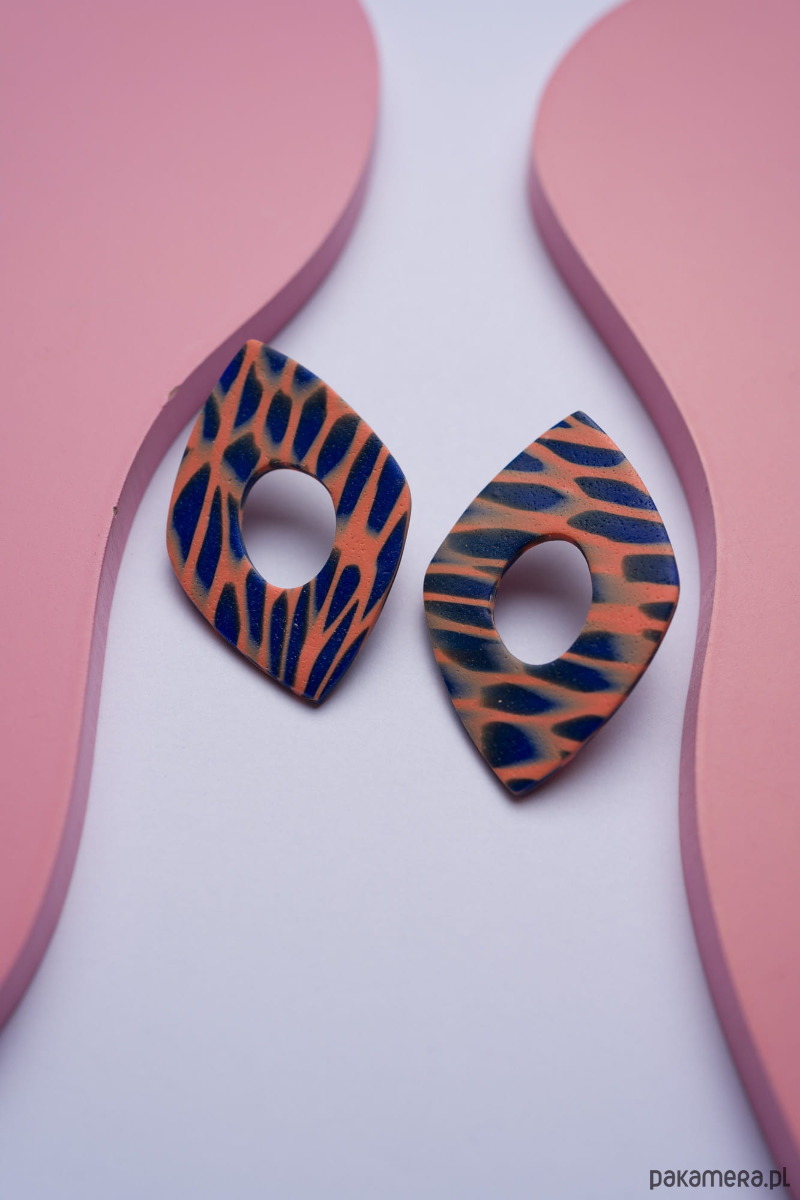 Kolczyki sztyfty w abstrakcyjnym kształcie w duchu Wiggly design. Każdy element jest wykonany, wycinany i szlifowany ręcznie z dbałością o każdy szczegół.