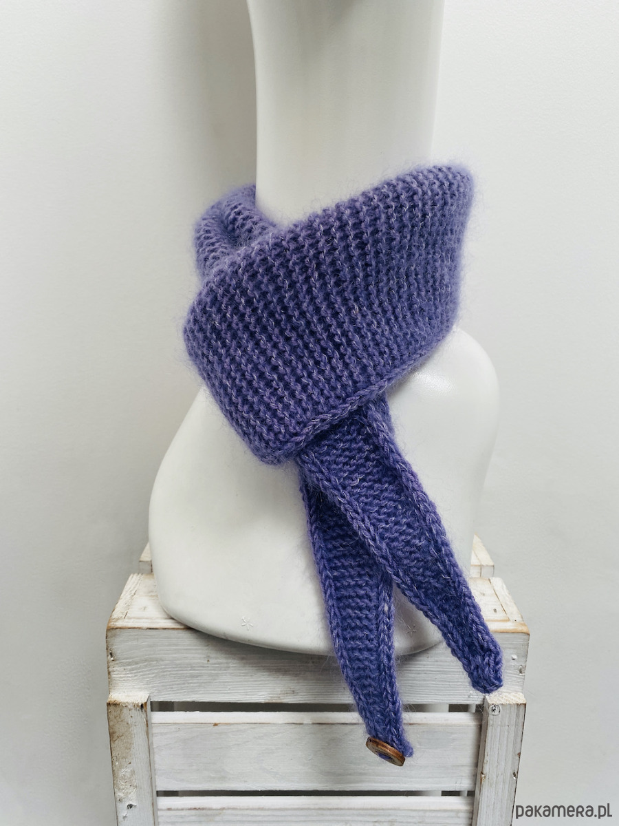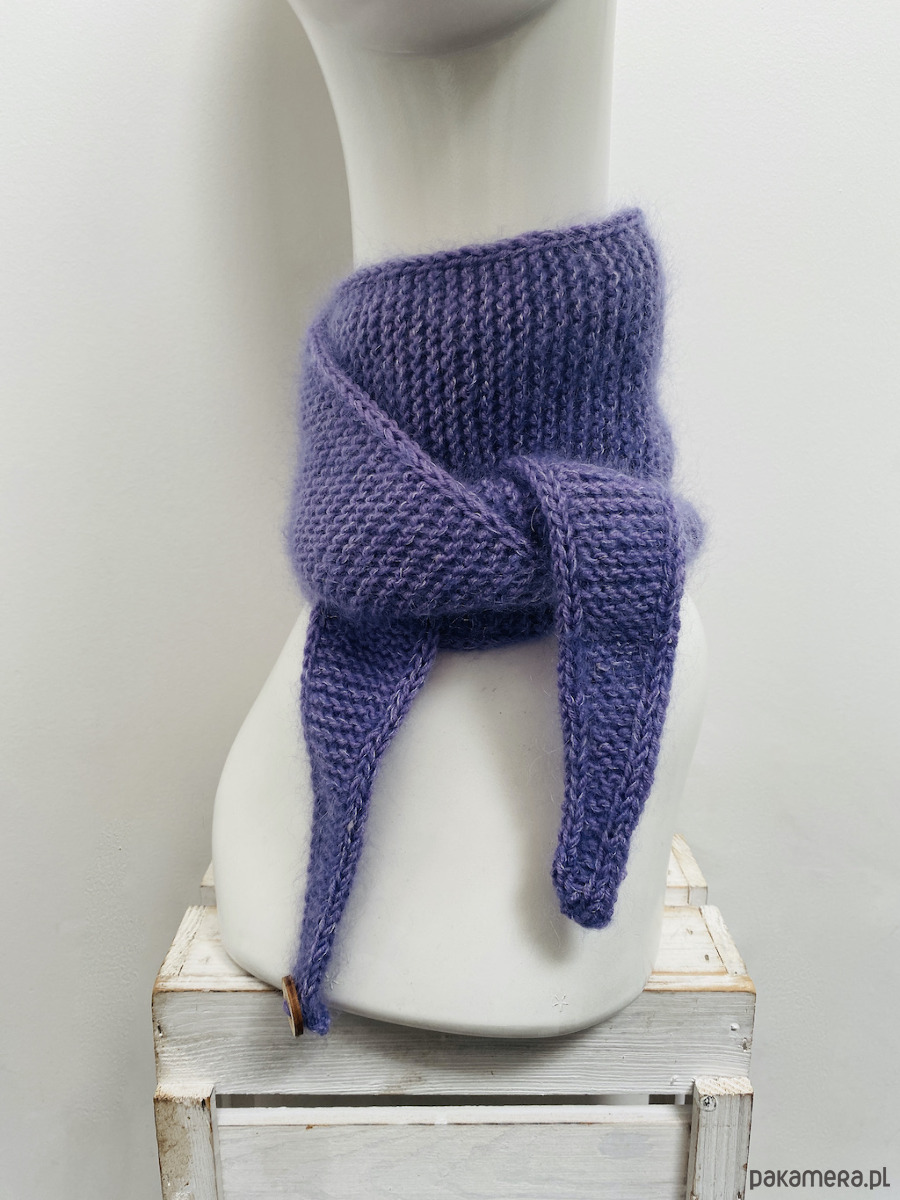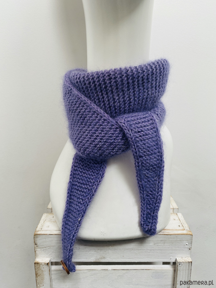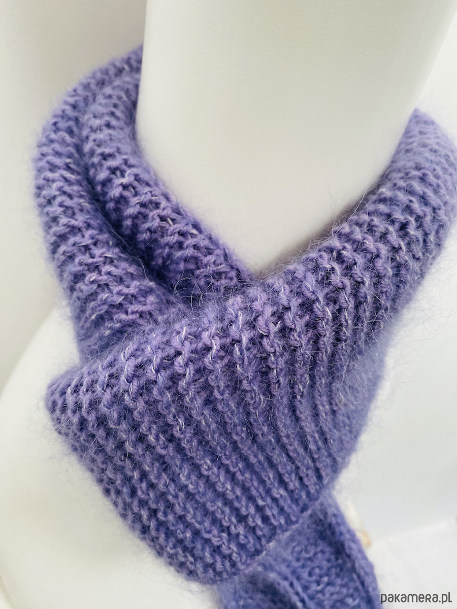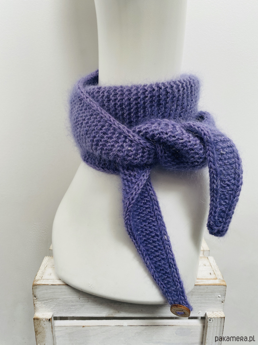 Minimalistyczny krótki szalik wiązany ręcznie robiony merino i kid silk