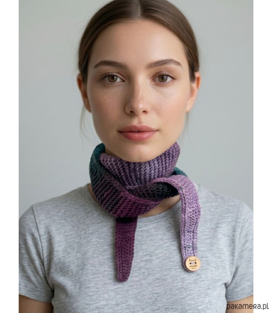 Co ważne – ten model jest wyjątkowo wszechstronny. Można zawiązać go również na głowie jak szeroką opaskę zamiast czapki, tworząc stylowy i modny akcent, idealny na chłodniejsze dni.