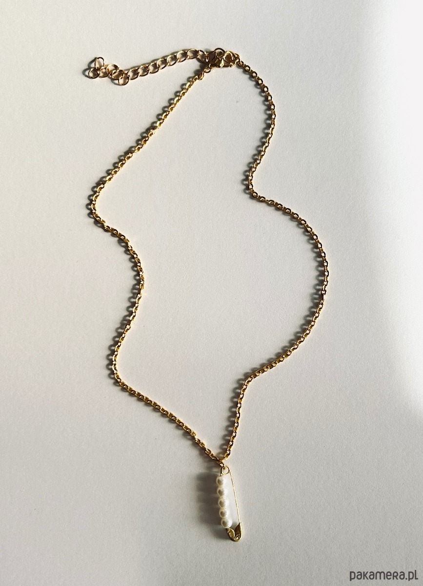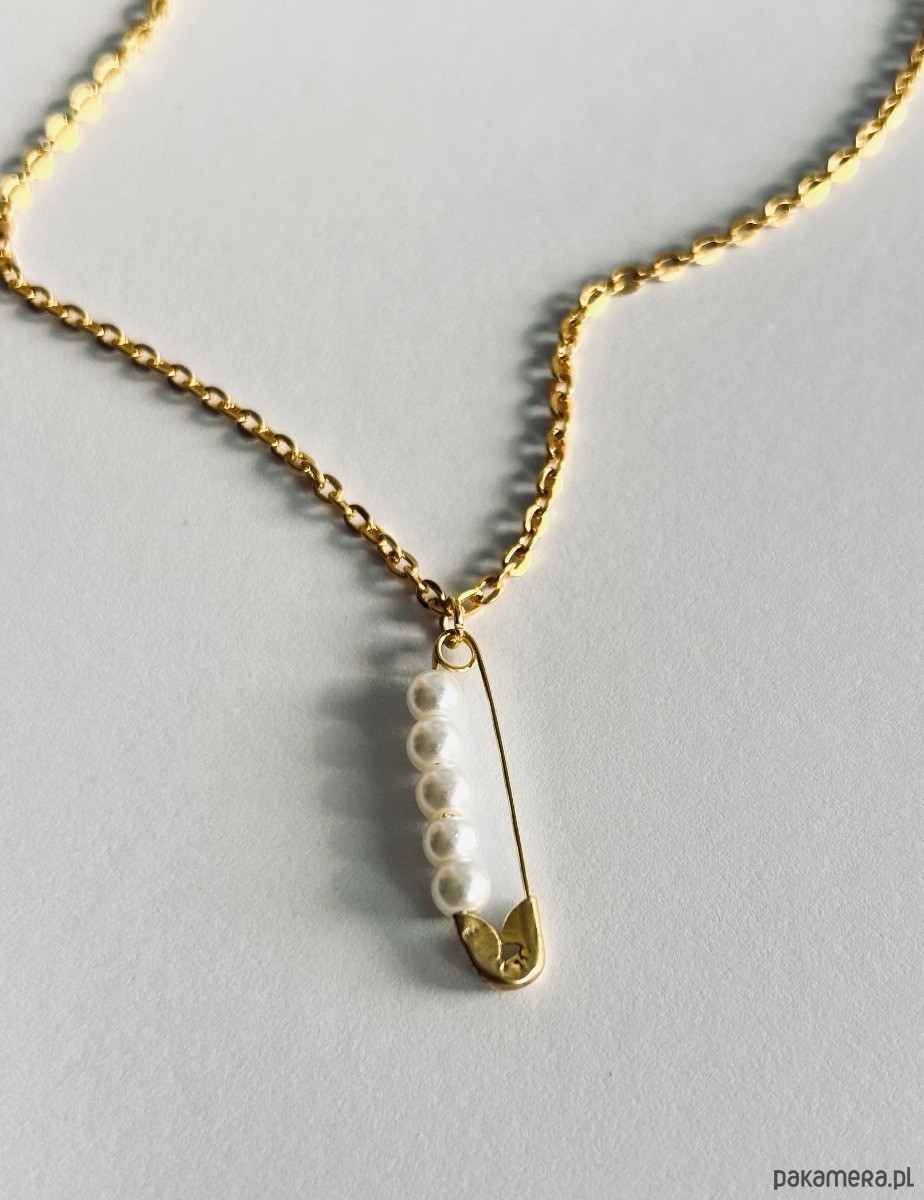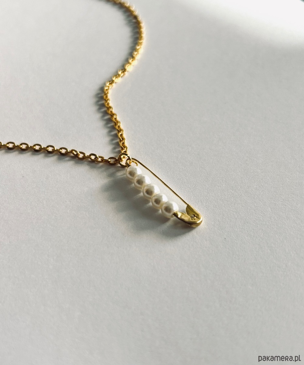 Minimalistyczny naszyjnik z agrafka i perłami - biżuteria handmade