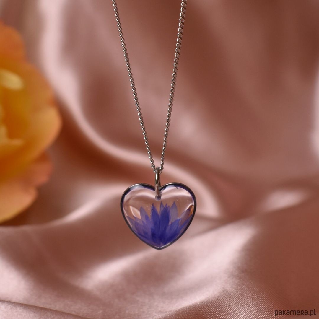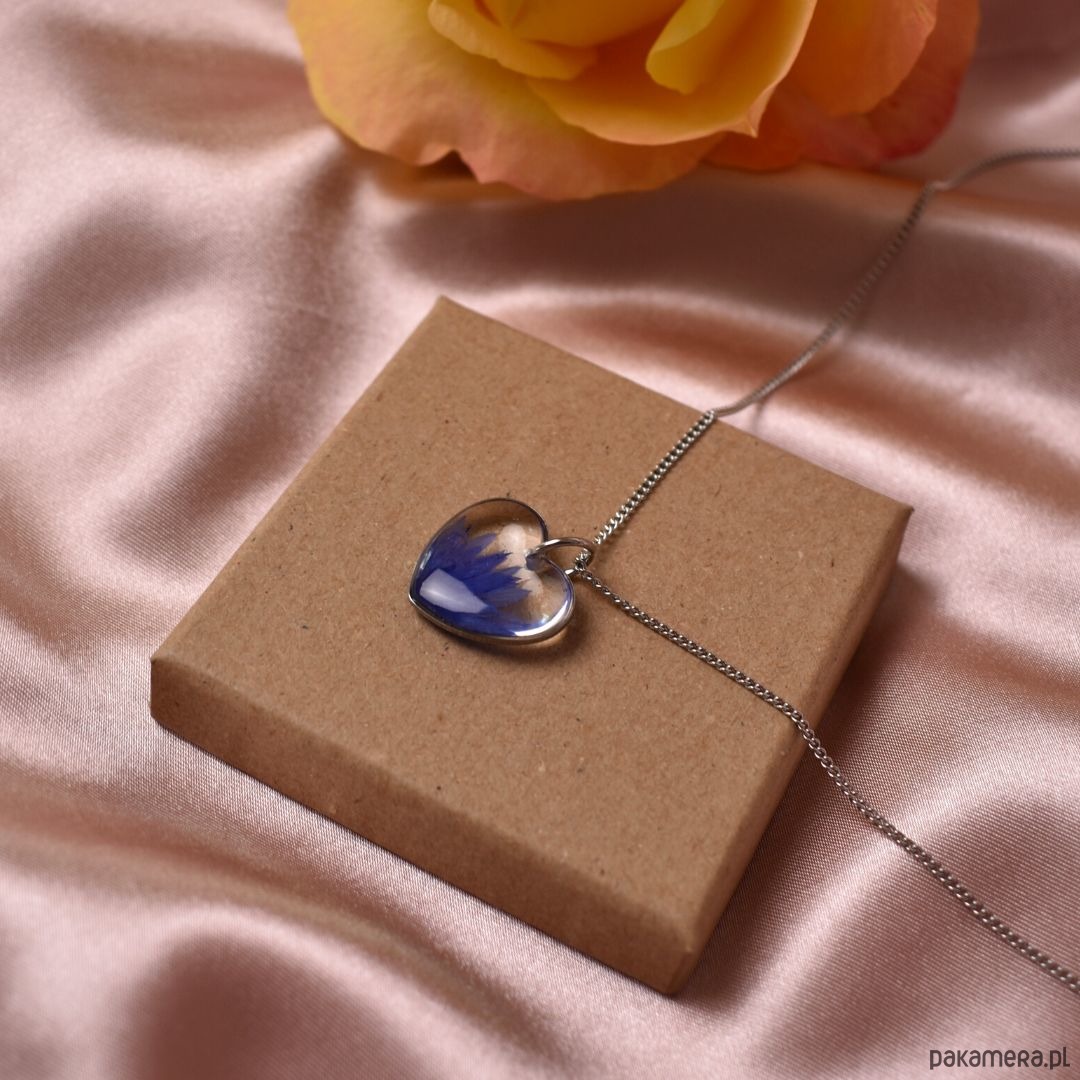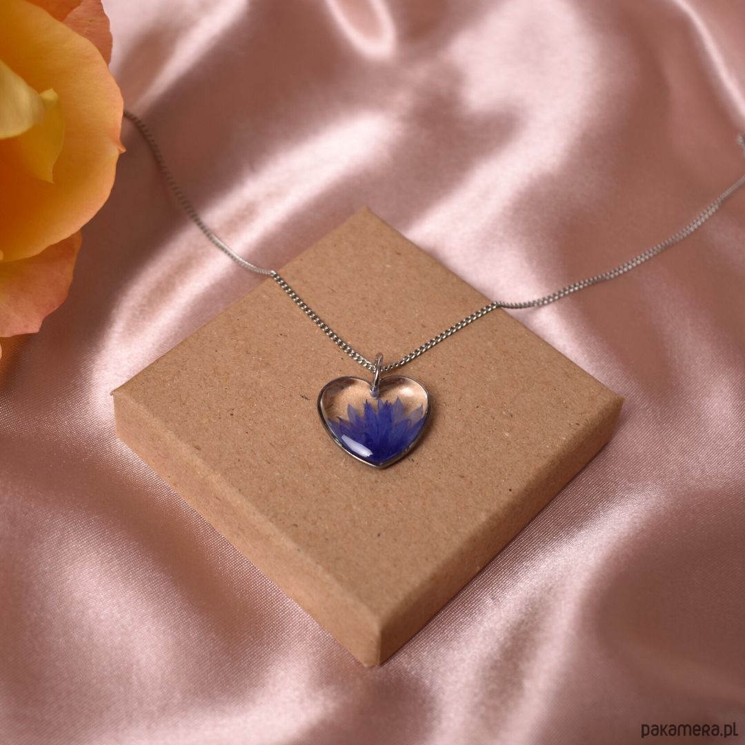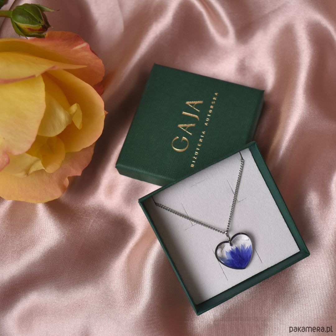 Przedstawiam wyjątkowy i minimalistyczny naszyjnik serduszko z płatkami chabrów zatopionymi w krystalicznej żywicy. Naszyjnik został zaprojektowany i wykonywany ręcznie w pracowni Gai. Taka biżuteria może być idealnym prezentem dla Siebie lub bliskiej Ci osoby z okazji, lub bez okazji. Naszyjnik zostanie zapakowany w ekologiczne pudełeczko na biżuterię.