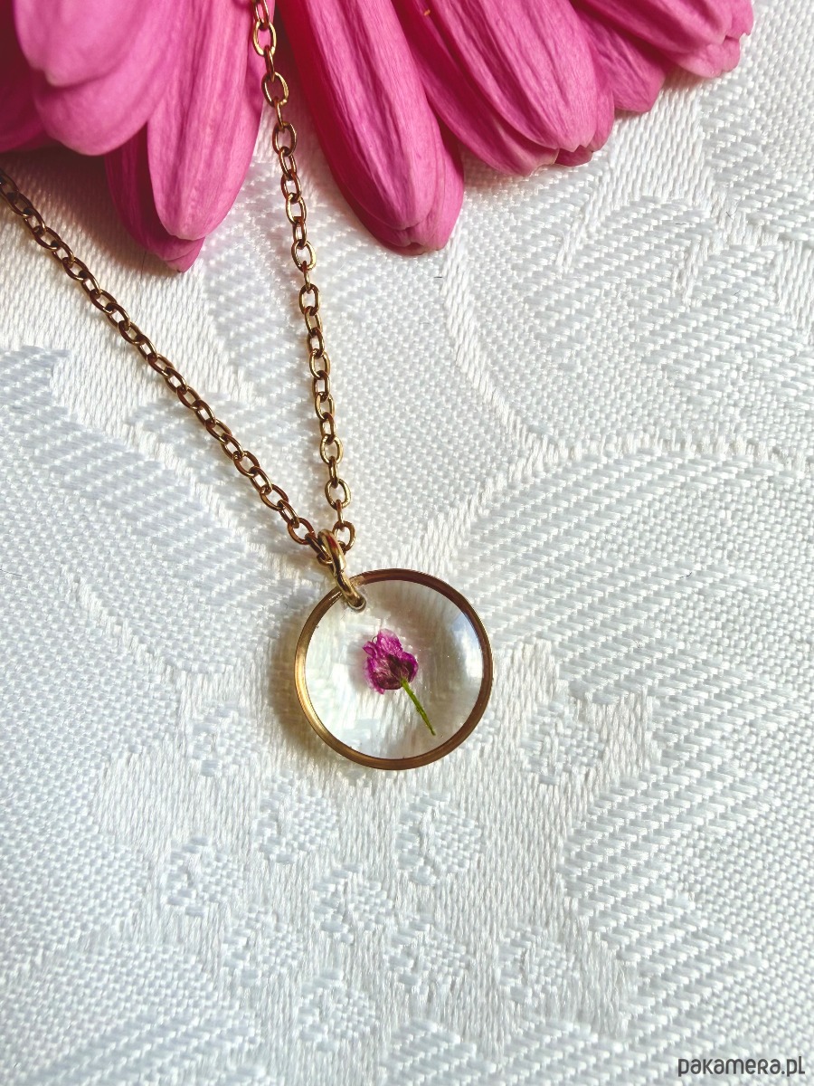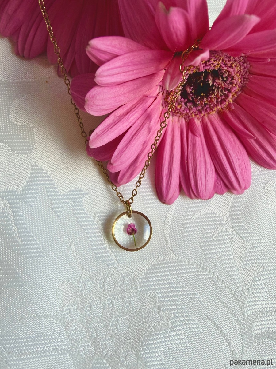 Odkryj urok zamknięty w drobnej formie. Ten wyjątkowy naszyjnik to połączenie nowoczesnego minimalizmu z delikatnością polnych kwiatów. W sercu 12-milimetrowej zawieszki umieściliśmy prawdziwy kwiat Smagliczki nadmorskiej, zatopiony w krystalicznie czystej żywicy, która podkreśla jego naturalny kształt i barwę.