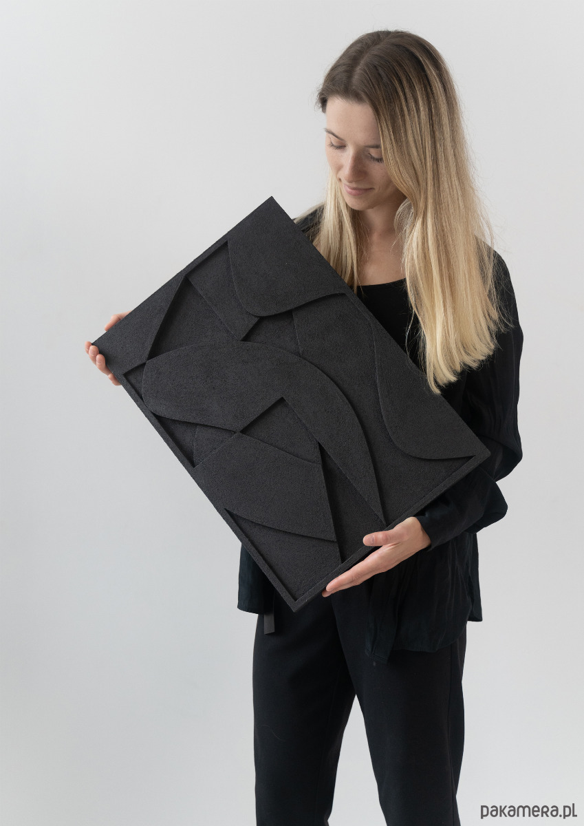 Dzięki specjalnej ukrytej ramie relief można zawiesić na ścianie w dowolnym ułożeniu.