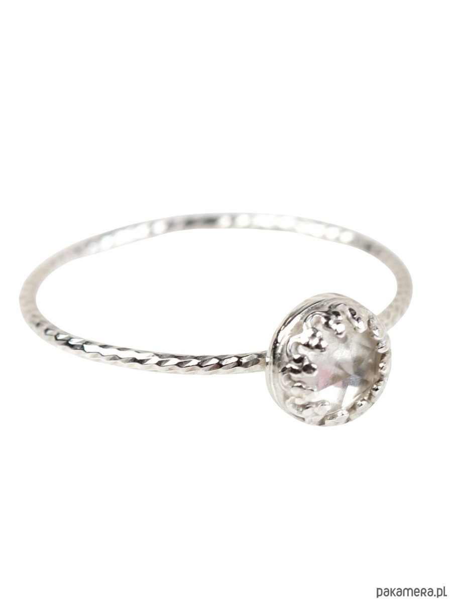 Minimalistyczny pierścionek Petite z kryształem górskim w stylu Vintage