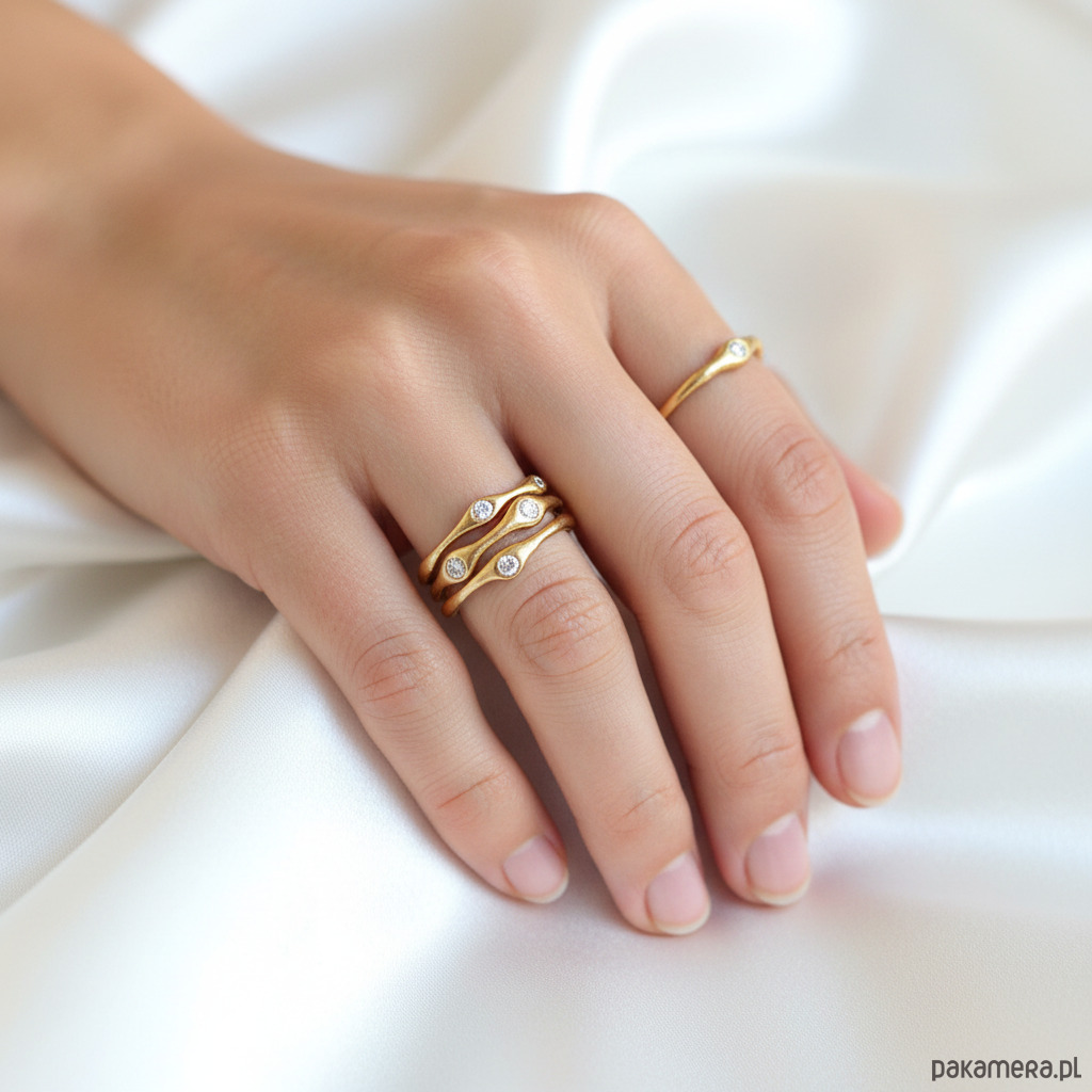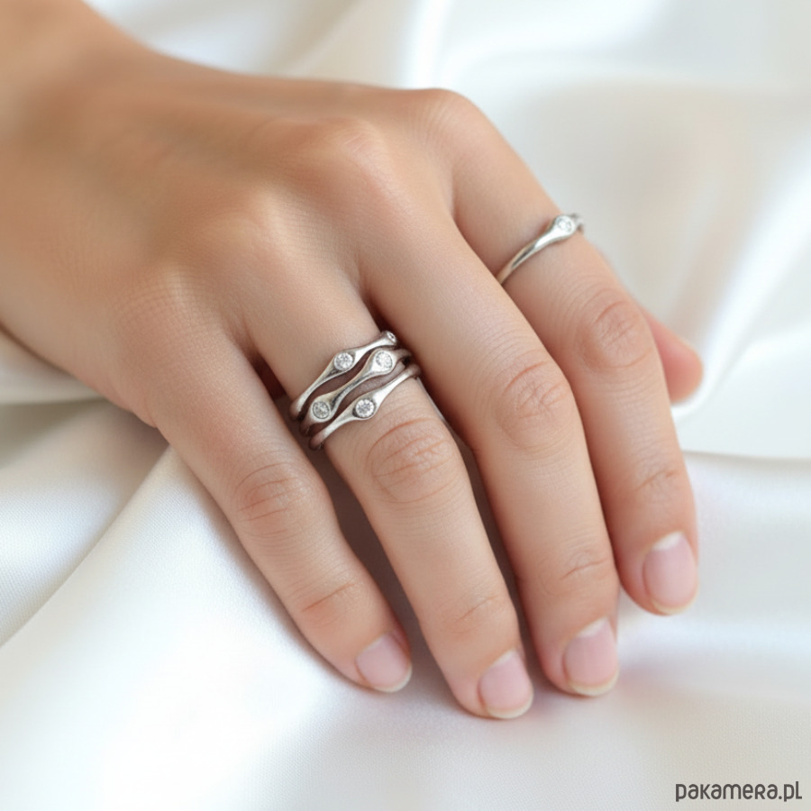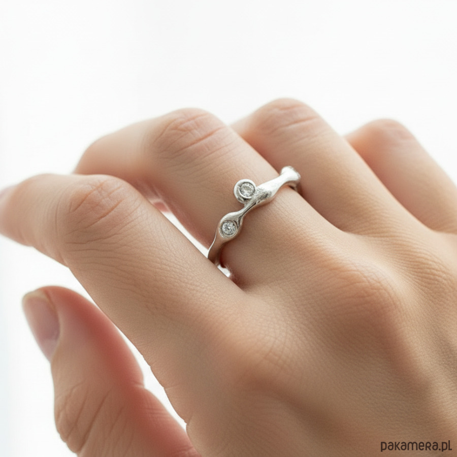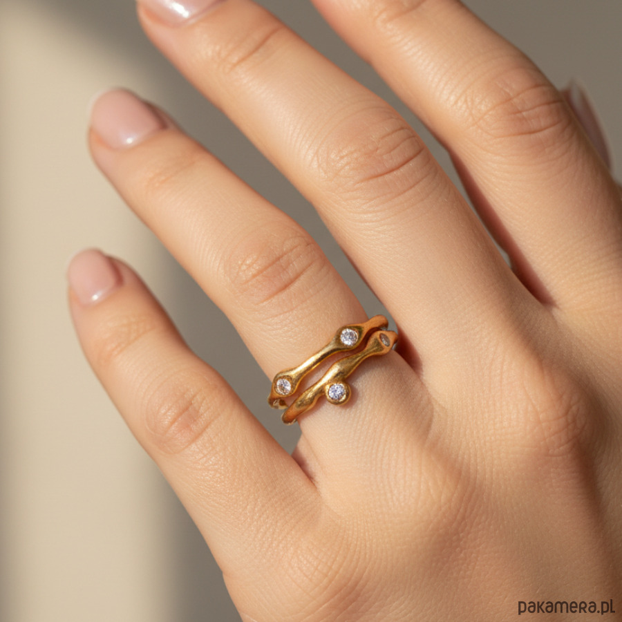 Minimalistyczny Pierścionek o Organicznej Strukturze z Cyrkoniami.