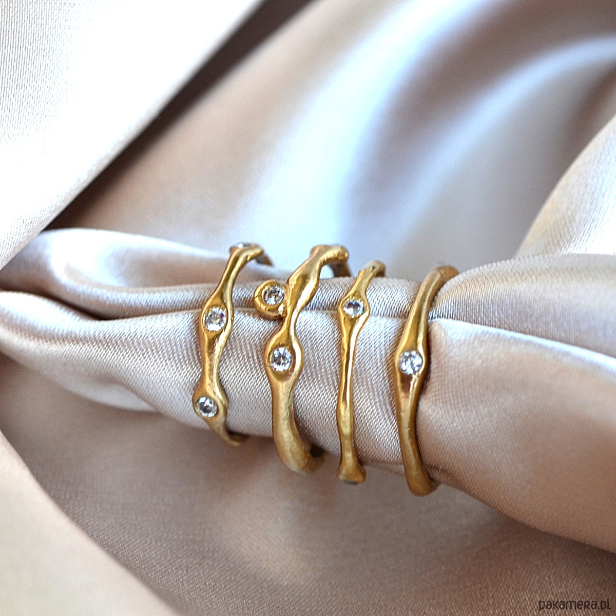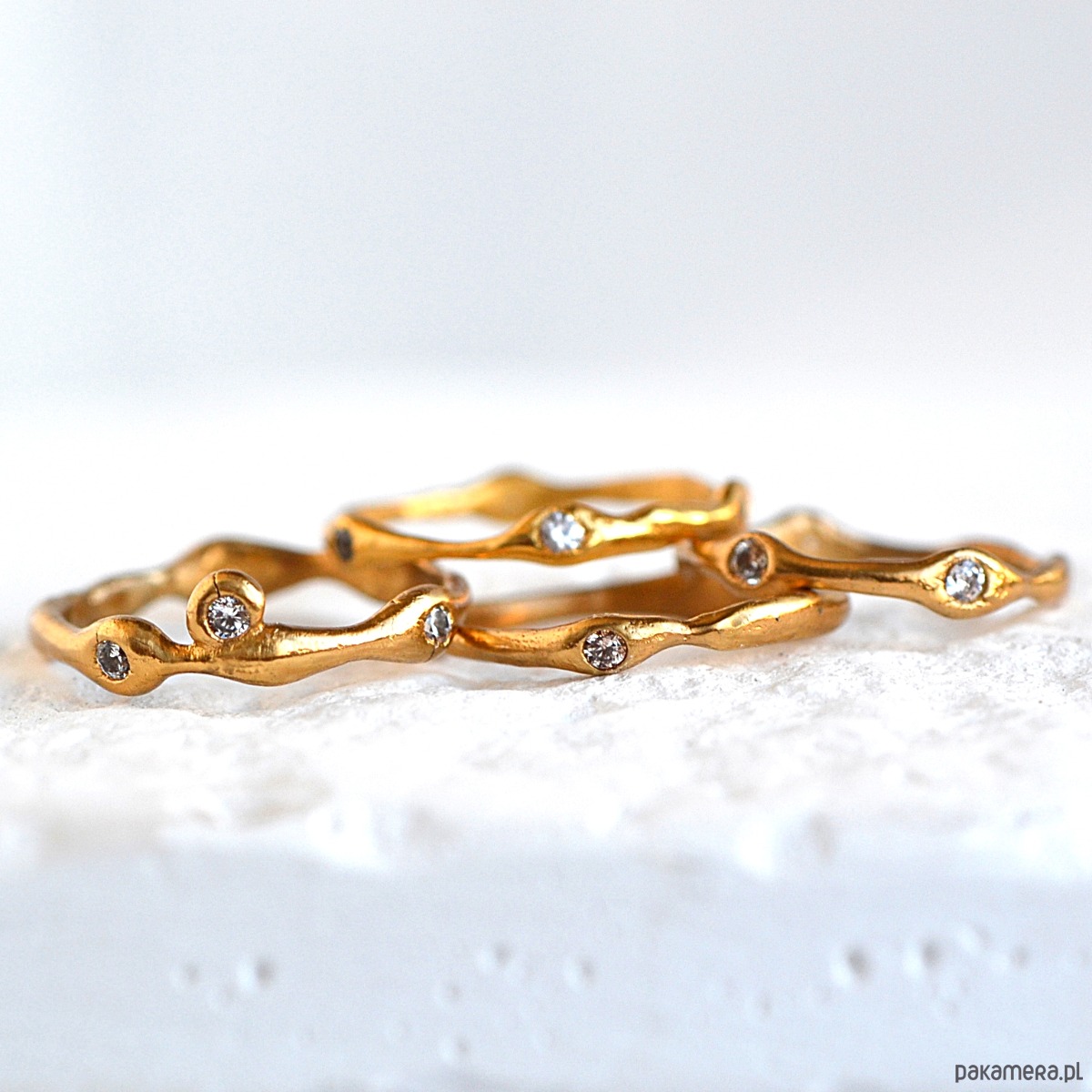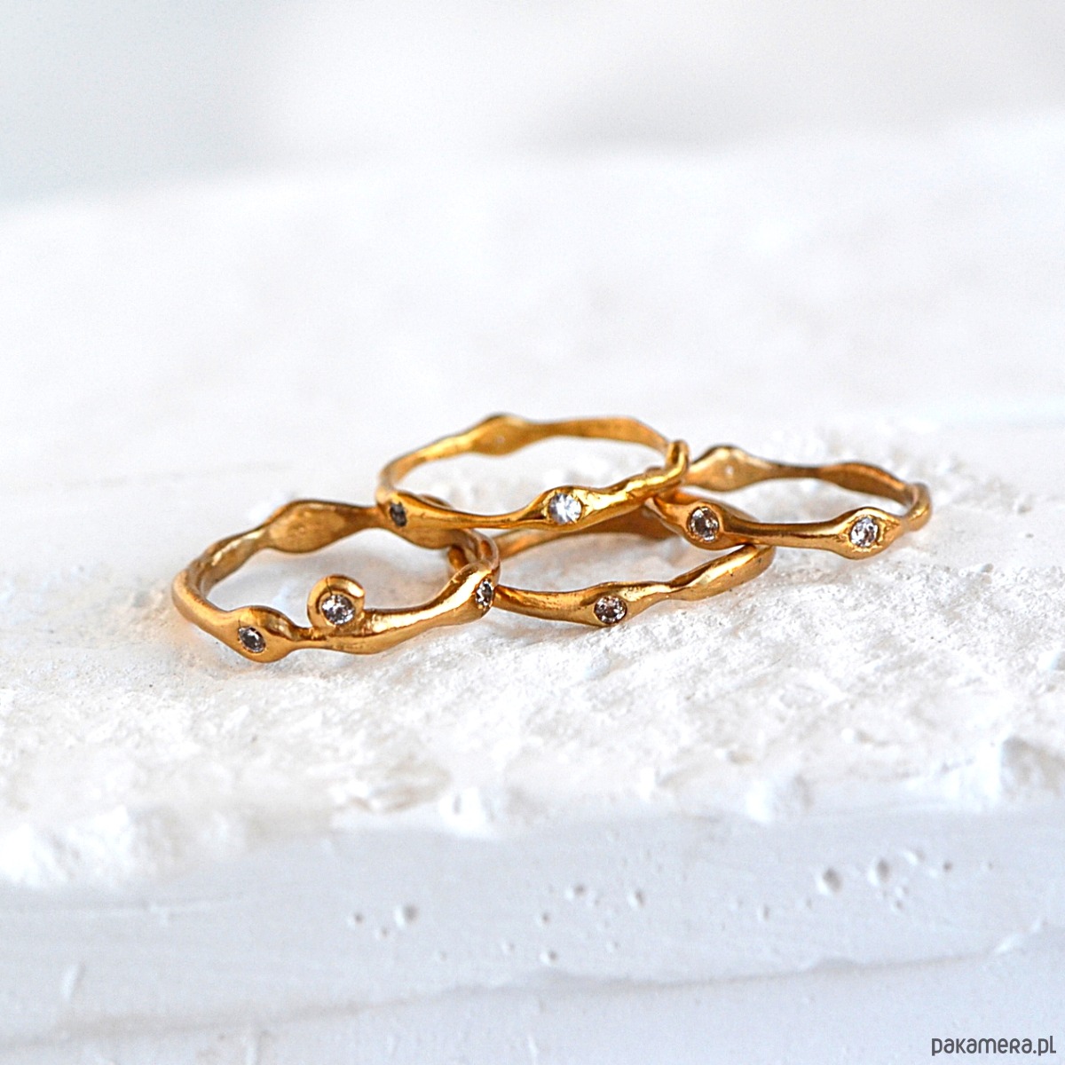 Minimalistyczny Pierścionek o Organicznej Strukturze z Cyrkoniami.