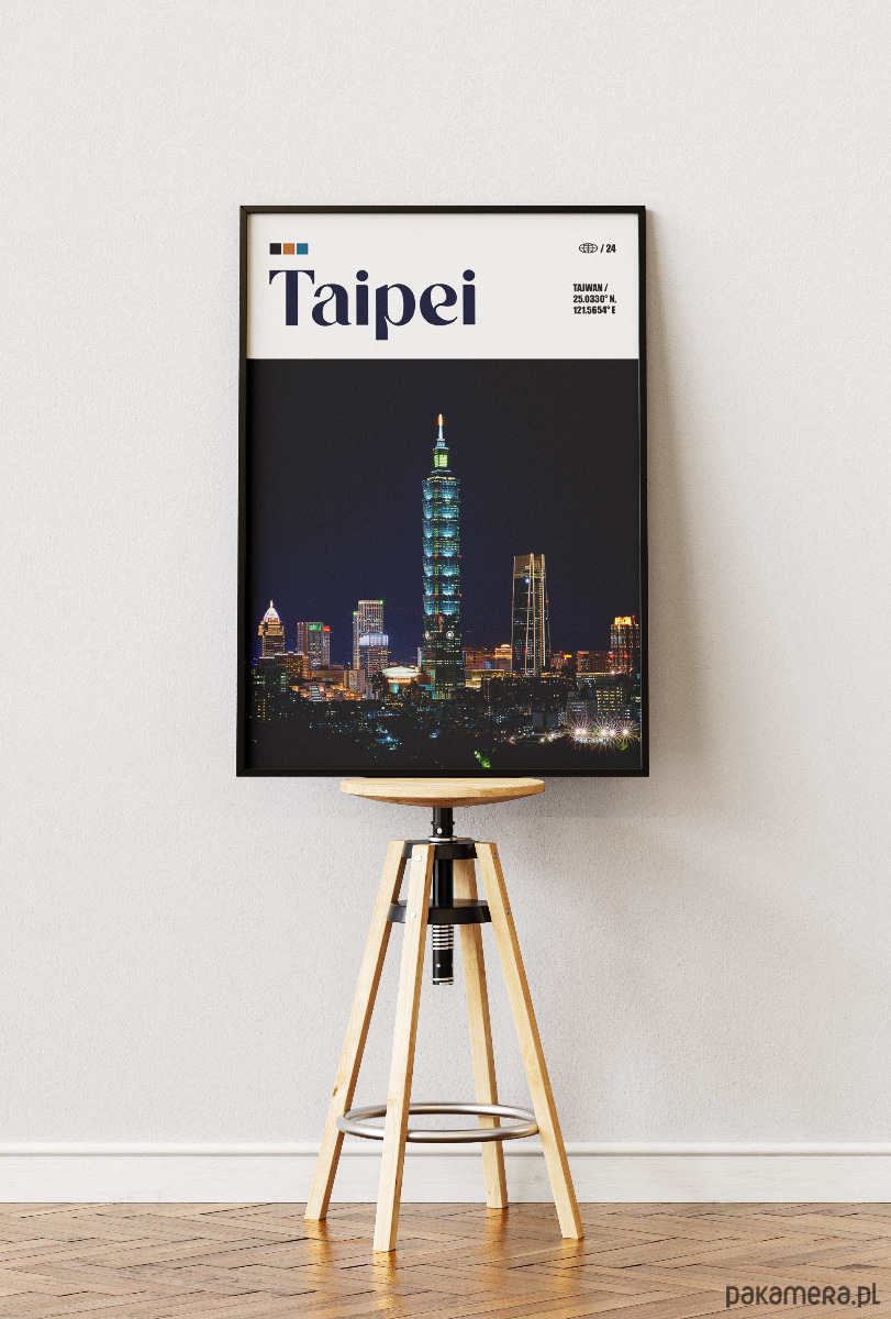 Tajpej to tętniąca życiem stolica Tajwanu, gdzie futurystyczna architektura spotyka się z tradycyjnymi azjatyckimi wartościami. Na plakacie dominuje rozświetlona sylwetka Taipei 101 – wieżowca, który przez lata dzierżył tytuł najwyższego budynku świata i do dziś pozostaje symbolem technologii oraz stabilności regionu. Miasto zachwyca nocną energią, słynnymi targami jedzenia i kontrastem między nowoczesnym centrum a zielonymi wzgórzami otaczającymi metropolię. Plakat ten wnosi do pomieszczenia nowoczesny, neonowy klimat i wielkomiejski prestiż.