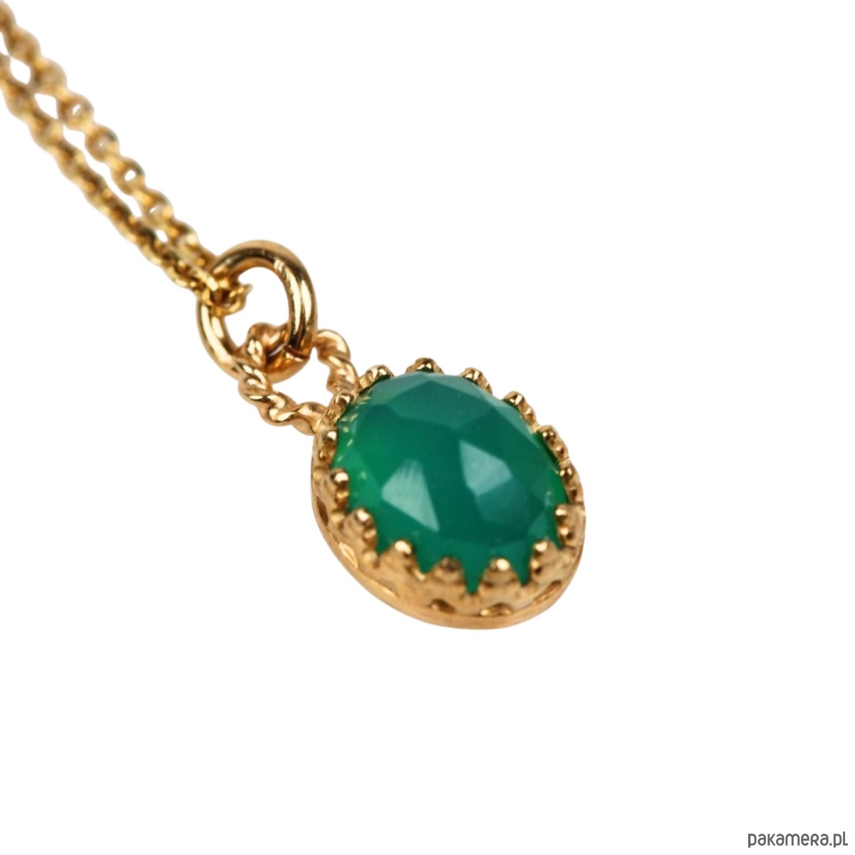 Minimalistyczny złoty naszyjnik z agatem zielonym w stylu Vintage