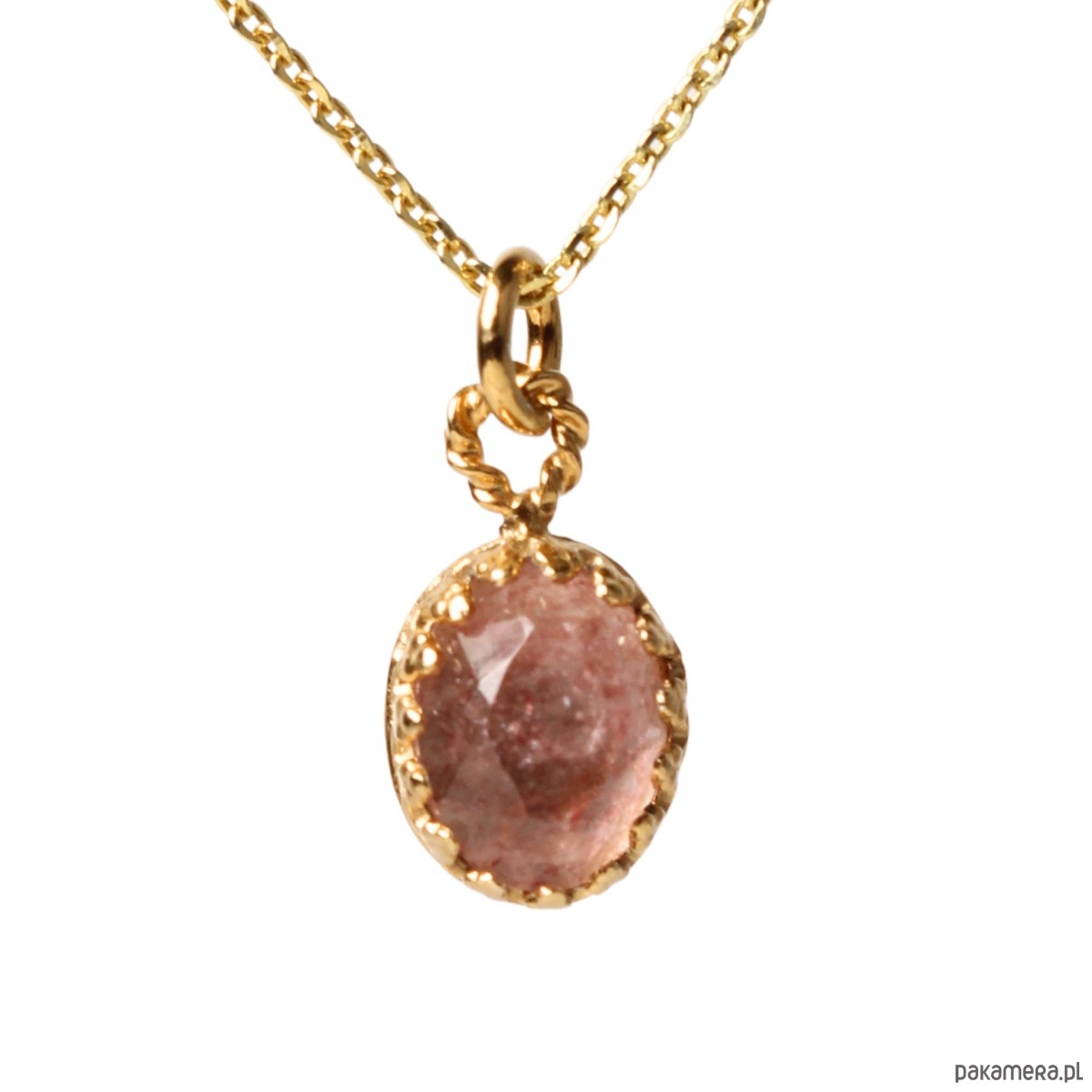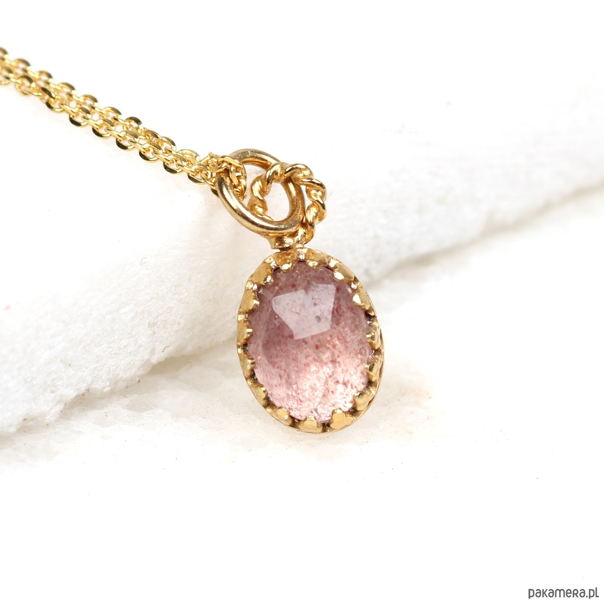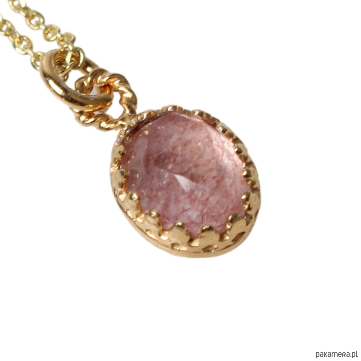 Minimalistyczny złoty naszyjnik z kwarcem truskawkowym w stylu Vintage