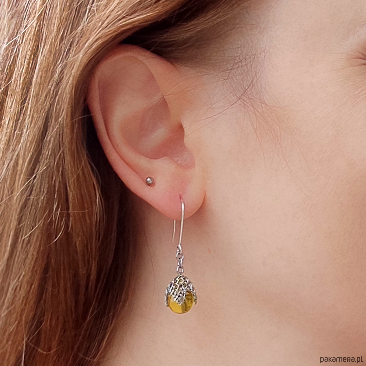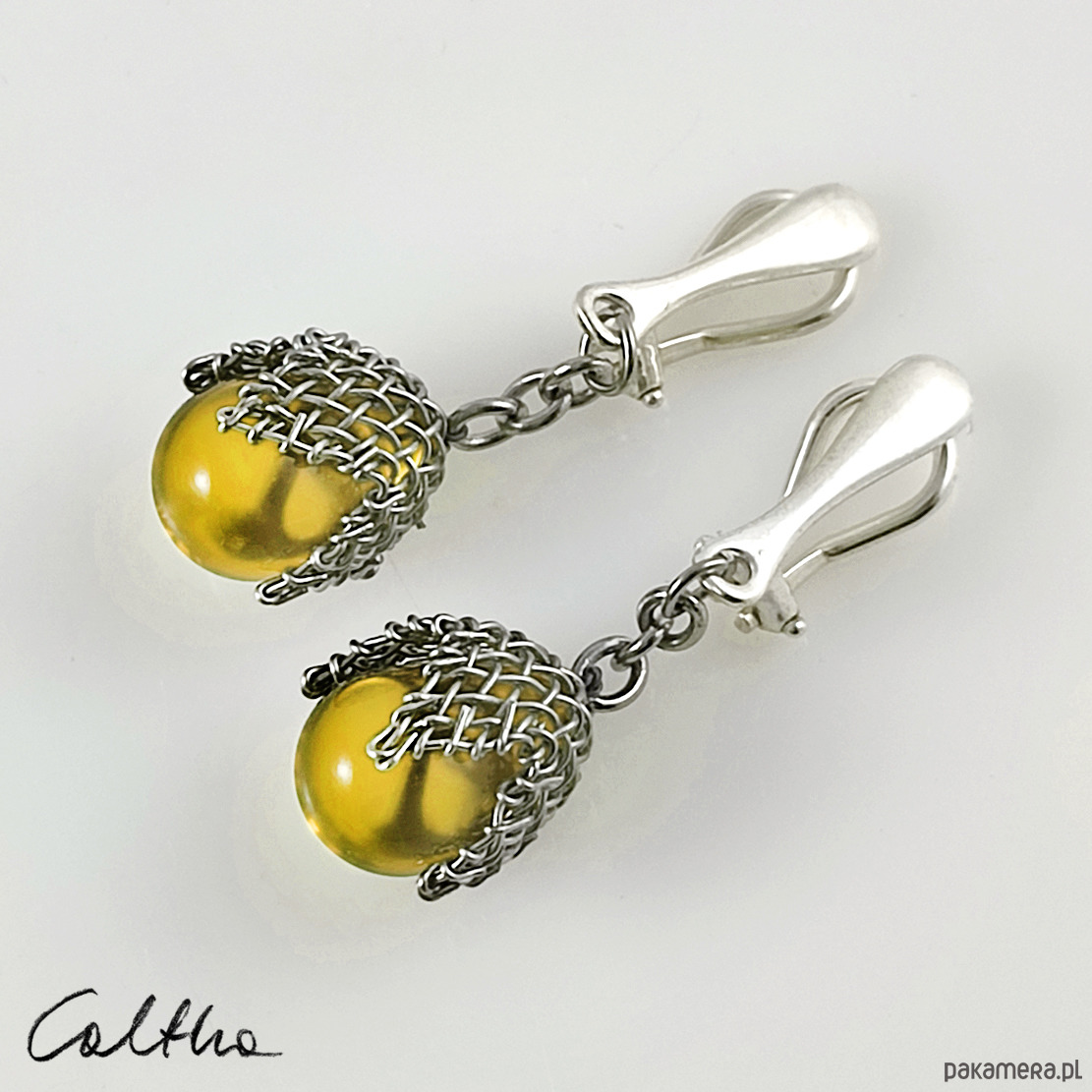 Wiszące klipsy wykonane z pięknych szklanych kropli w metalowej siateczce. Dzięki prostej formie doskonale nadają się zarówno na co dzień jak i na specjalną okazję, a także jako wyjątkowy prezent dla osoby, która ceni sobie oryginalną biżuterię.