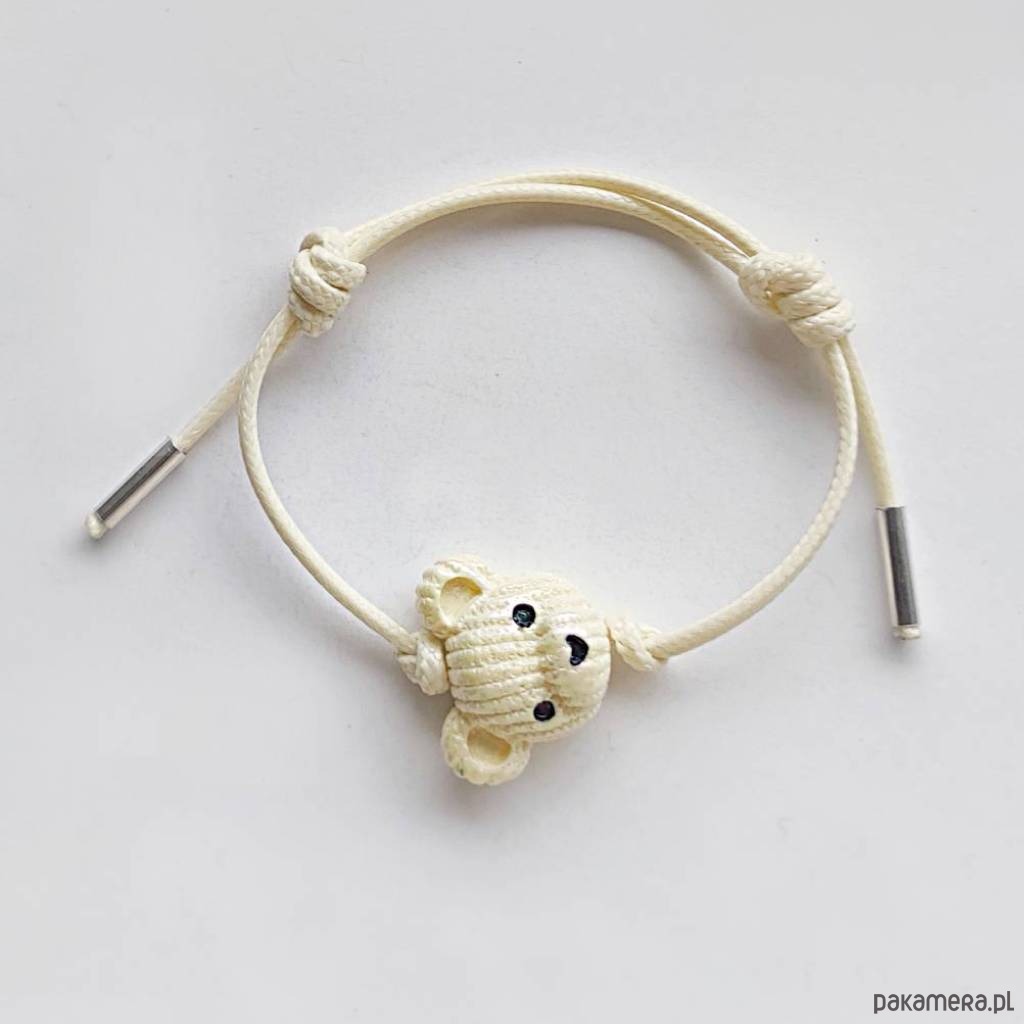 MIŚ bransoletka- uroczy design. Nietuzinkowy dodatek idealnie stanowi uzupełnienie swobodnych, casualowych stylizacji. Bransoletka wykonana są z :koralik akrylowy – miś – (23X 19 mm), ozdobny sznurek, srebro pr. 925. Ten niebanalny drobiazg na pewno wywoła uśmiech na Twojej twarzy.