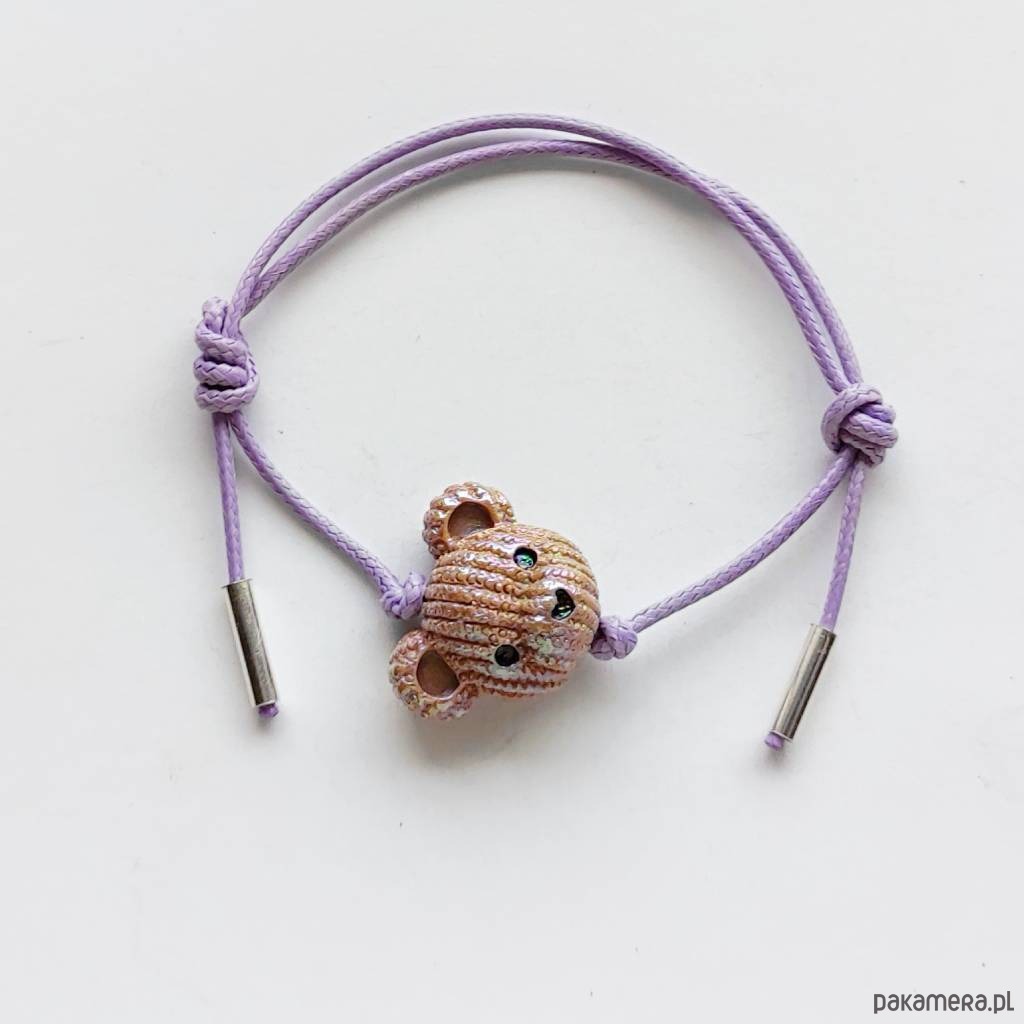 MIŚ bransoletka- uroczy design. Nietuzinkowy dodatek idealnie stanowi uzupełnienie swobodnych, casualowych stylizacji. Bransoletka wykonana są z :koralik akrylowy – miś – (23X 19 mm), ozdobny sznurek, srebro pr. 925. Ten niebanalny drobiazg na pewno wywoła uśmiech na Twojej twarzy.