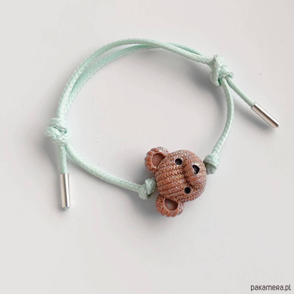 MIŚ bransoletka- uroczy design. Nietuzinkowy dodatek idealnie stanowi uzupełnienie swobodnych, casualowych stylizacji. Bransoletka wykonana są z :koralik akrylowy – miś – (23X 19 mm), ozdobny sznurek, srebro pr. 925. Ten niebanalny drobiazg na pewno wywoła uśmiech na Twojej twarzy.