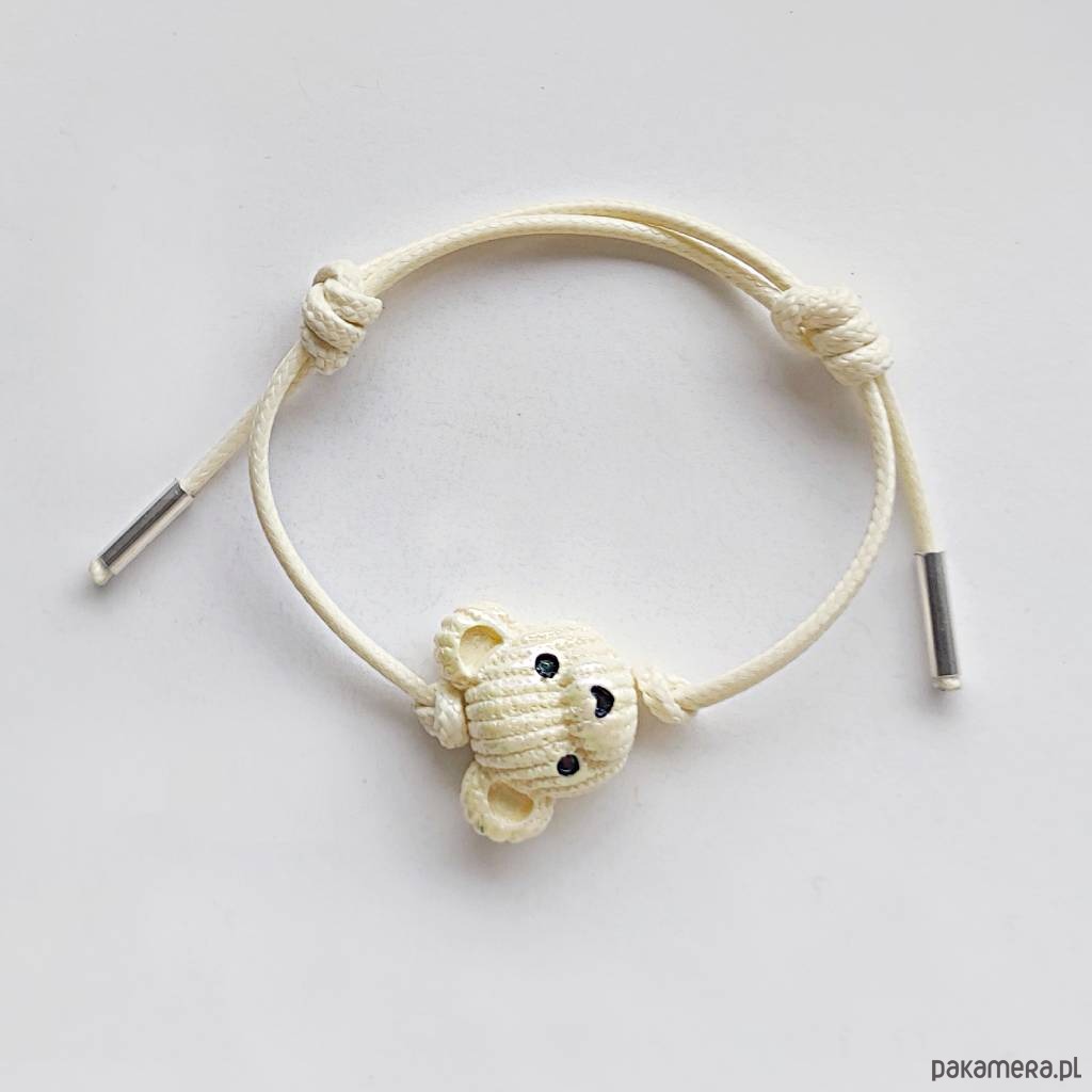 MIŚ bransoletka- uroczy design. Nietuzinkowy dodatek idealnie stanowi uzupełnienie swobodnych, casualowych stylizacji. Bransoletka wykonana są z :koralik akrylowy – miś – (23X 19 mm), ozdobny sznurek, srebro pr. 925. Ten niebanalny drobiazg na pewno wywoła uśmiech na Twojej twarzy.