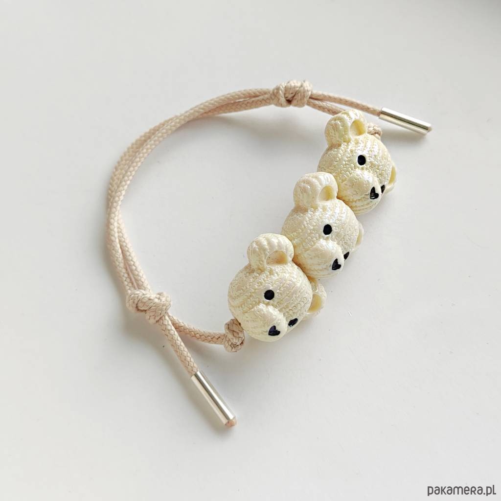 MIŚ bransoletka- uroczy design. Nietuzinkowy dodatek idealnie stanowi uzupełnienie swobodnych, casualowych stylizacji. Bransoletka wykonana są z :koralik akrylowy – miś – (23X 19 mm), ozdobny sznurek, srebro pr. 925. Ten niebanalny drobiazg na pewno wywoła uśmiech na Twojej twarzy. Oryginalna bransoletka.