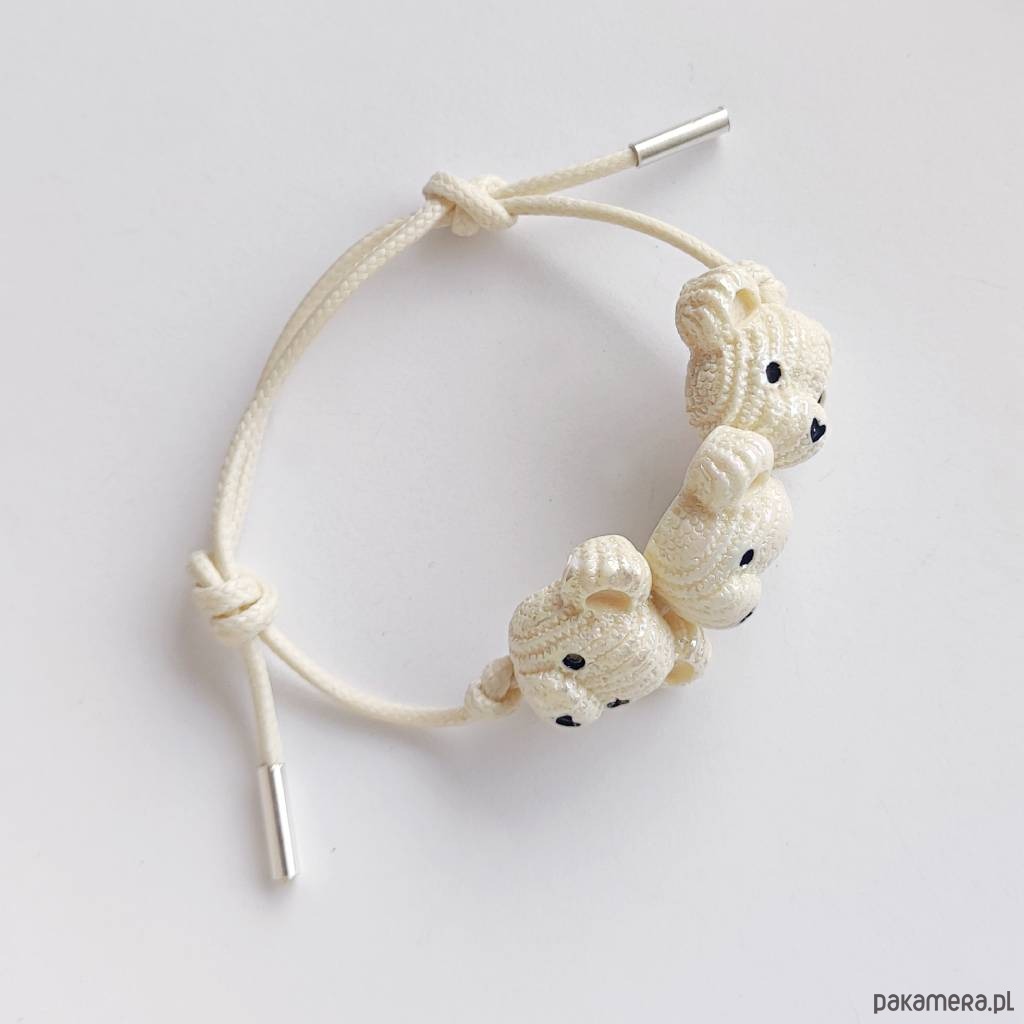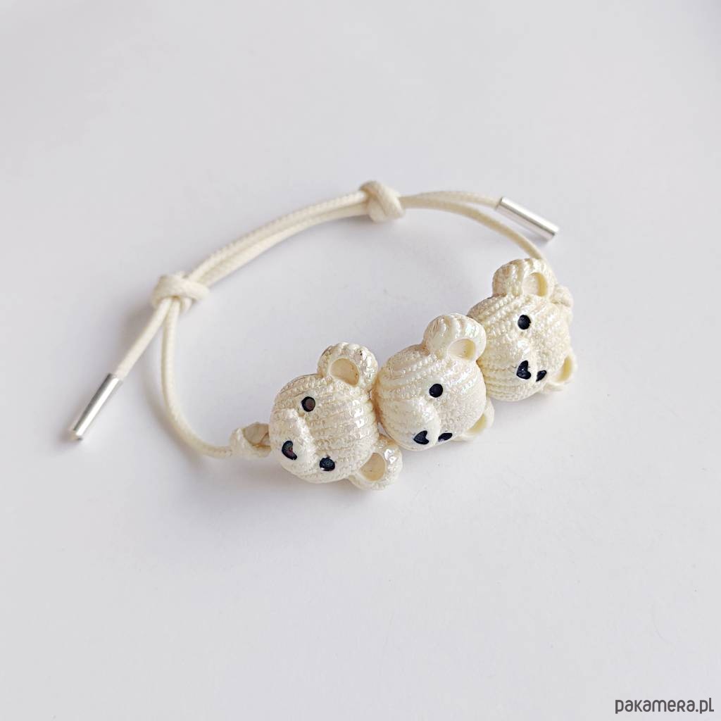 MIŚ bransoletka- uroczy design. Nietuzinkowy dodatek idealnie stanowi uzupełnienie swobodnych, casualowych stylizacji. Bransoletka wykonana są z :koralik akrylowy – miś – (23X 19 mm), ozdobny sznurek, srebro pr. 925. Ten niebanalny drobiazg na pewno wywoła uśmiech na Twojej twarzy. Oryginalna bransoletka.