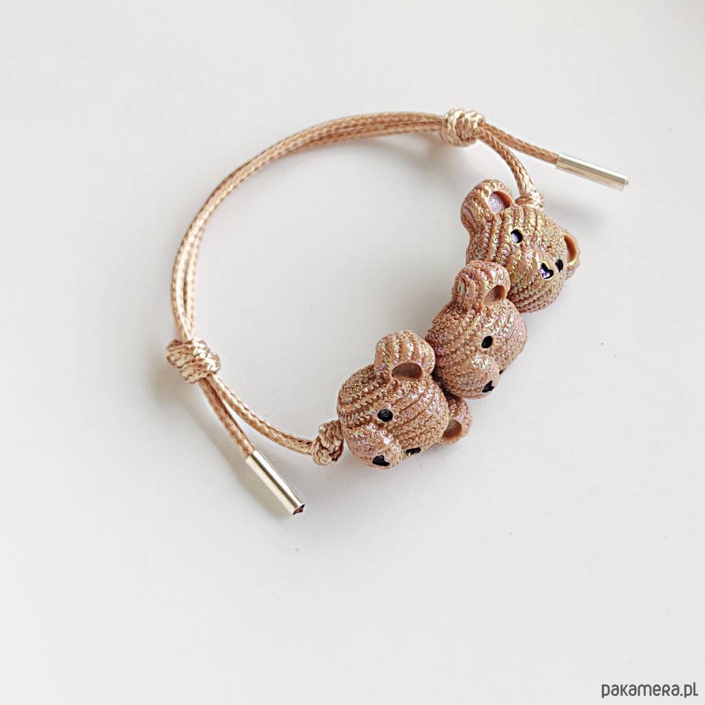 MIŚ bransoletka- uroczy design. Nietuzinkowy dodatek idealnie stanowi uzupełnienie swobodnych, casualowych stylizacji. Bransoletka wykonana są z :koralik akrylowy – miś – (23X 19 mm), ozdobny sznurek, srebro pr. 925. Ten niebanalny drobiazg na pewno wywoła uśmiech na Twojej twarzy. Bransoletka jest regulowana.