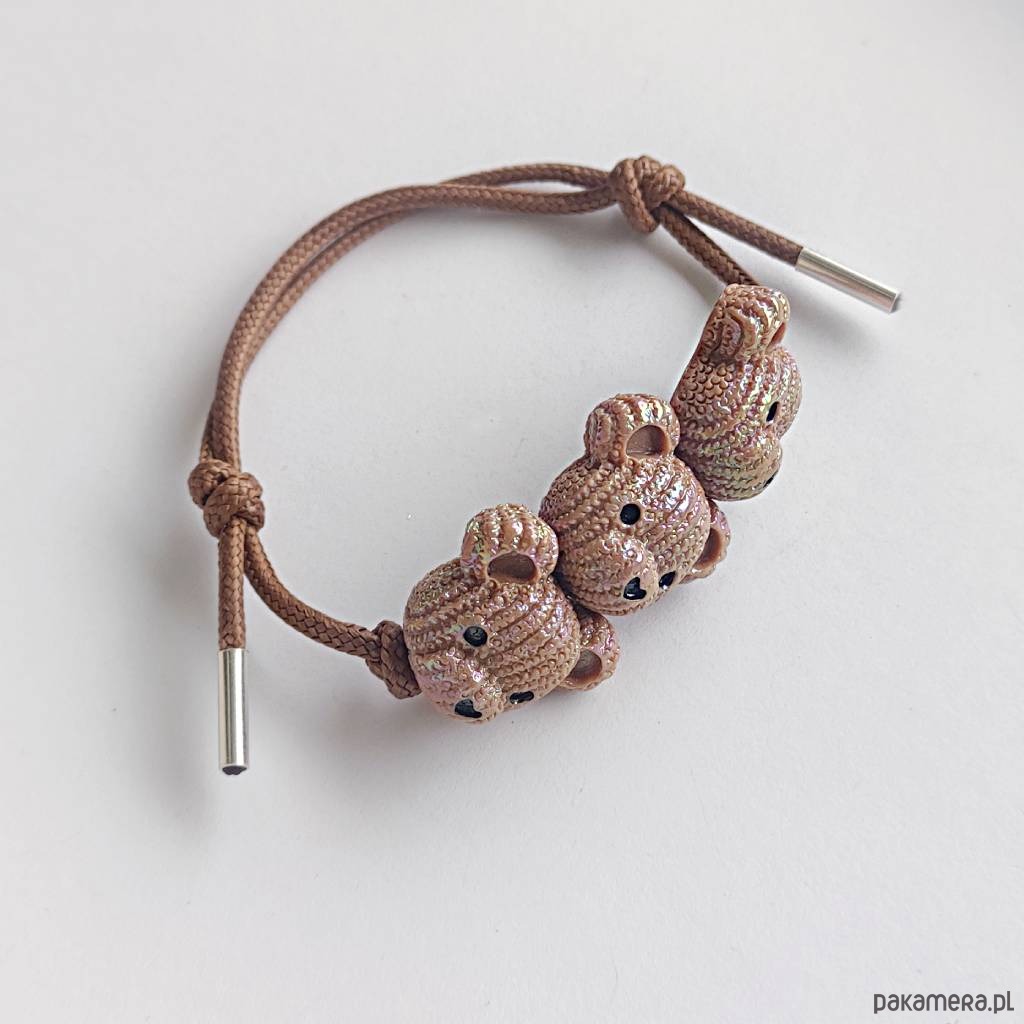 MIŚ bransoletka- uroczy design. Nietuzinkowy dodatek idealnie stanowi uzupełnienie swobodnych, casualowych stylizacji. Bransoletka wykonana są z :koralik akrylowy – miś – (23X 19 mm), ozdobny sznurek, srebro pr. 925. Ten niebanalny drobiazg na pewno wywoła uśmiech na Twojej twarzy. Bransoletka jest bardzo oryginalna.