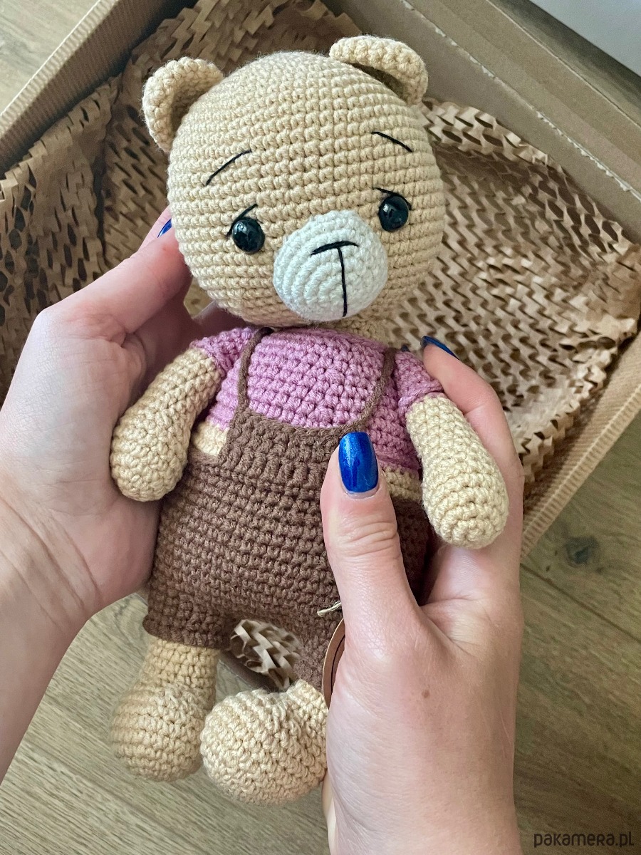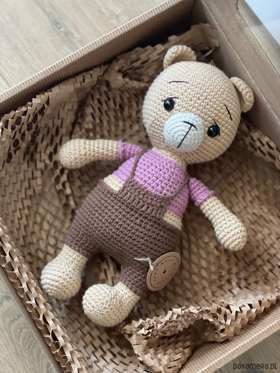 Prezentuje pięknego misia wykonanego ręcznie na szydełku! Jest on dostępny od ręki idealnie sprawdzi się jako przytulanka z okazji zbliżających się Mikołajek , jaki prezent gwiazdkowy, pamiątka chrztu św czy narodzin.