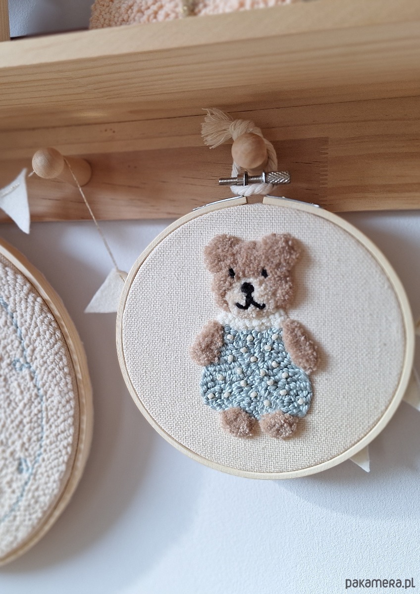 Miś w tamborku (13 cm) to coś więcej niż dekoracja. To detal, który tworzy atmosferę spokoju i miłości – małą, magiczną ozdobę, która dopełnia dziecięcy świat. Doskonały do pokoju dziewczynki, która rośnie w otoczeniu delikatności i czułości.