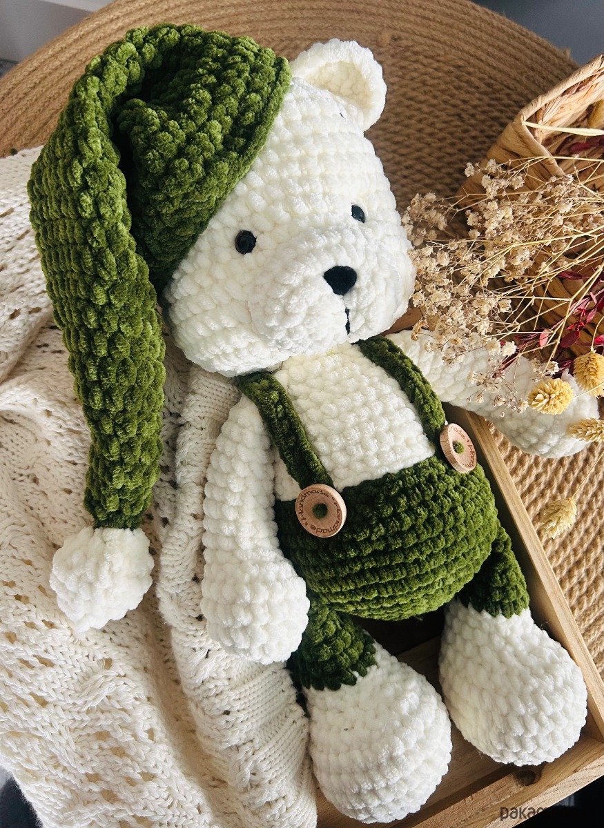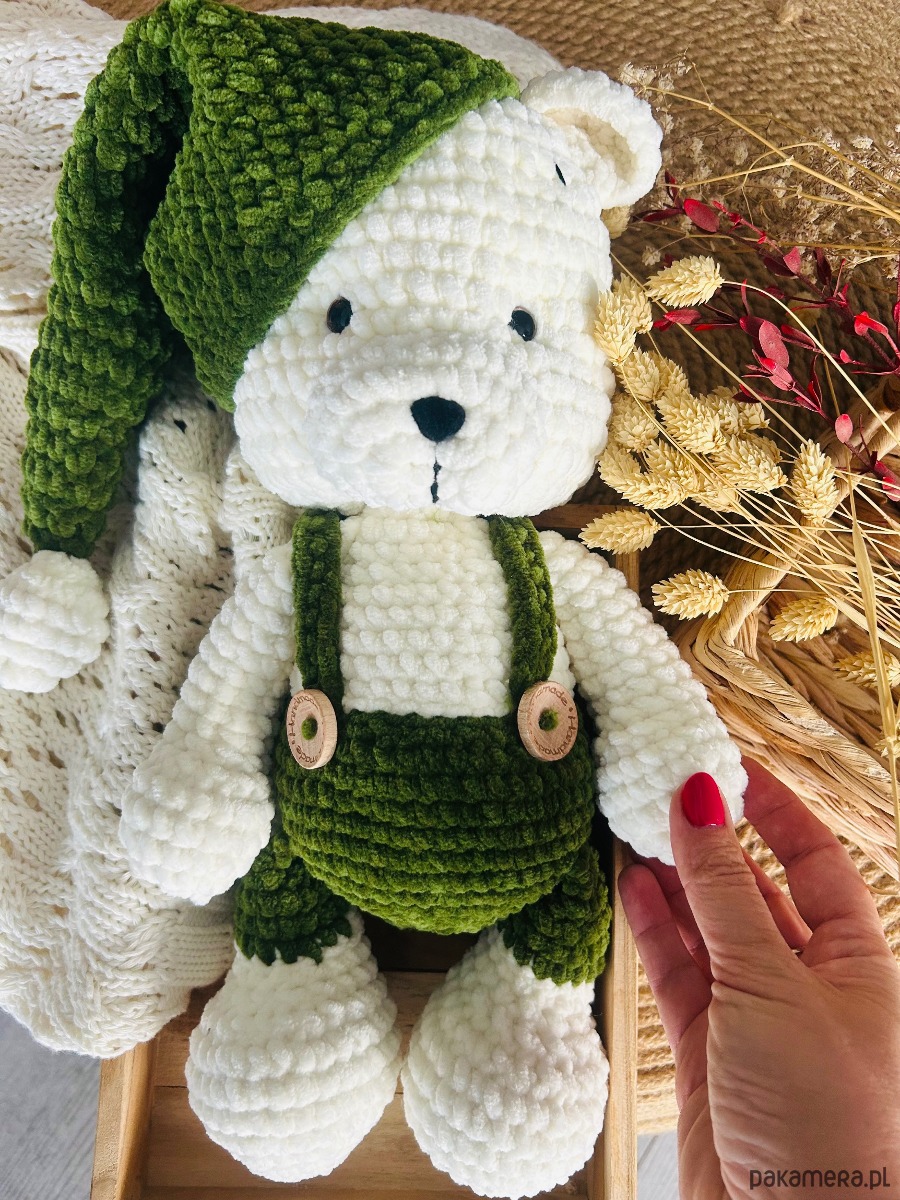Ten wyjątkowy miś został wykonany ręcznie z niezwykle miękkiej, przytulnej włóczki 🧶🤍 Ma ok. 38 cm wysokości i jest idealnym towarzyszem do tulenia, dekoracji pokoiku dziecięcego albo prezentu z duszą 🎁🌿