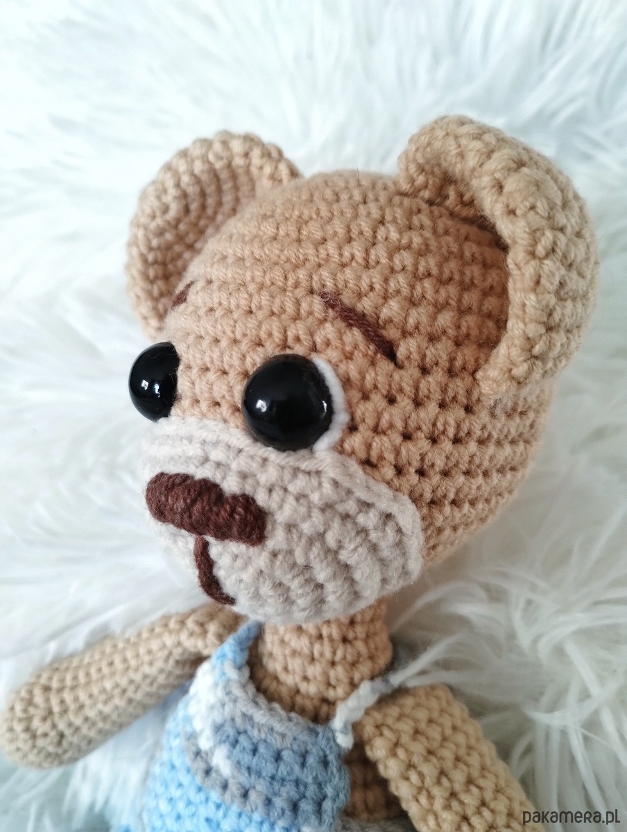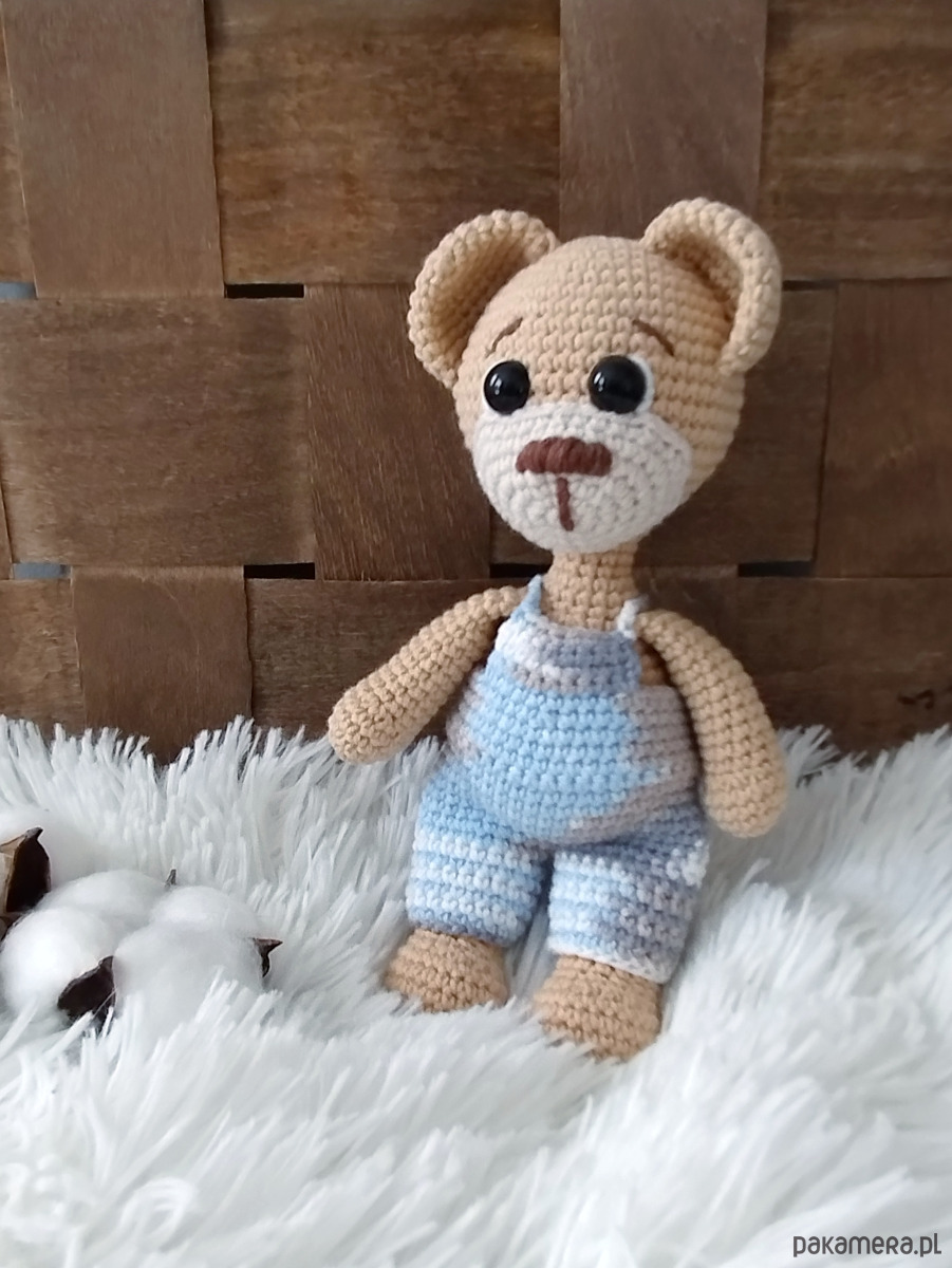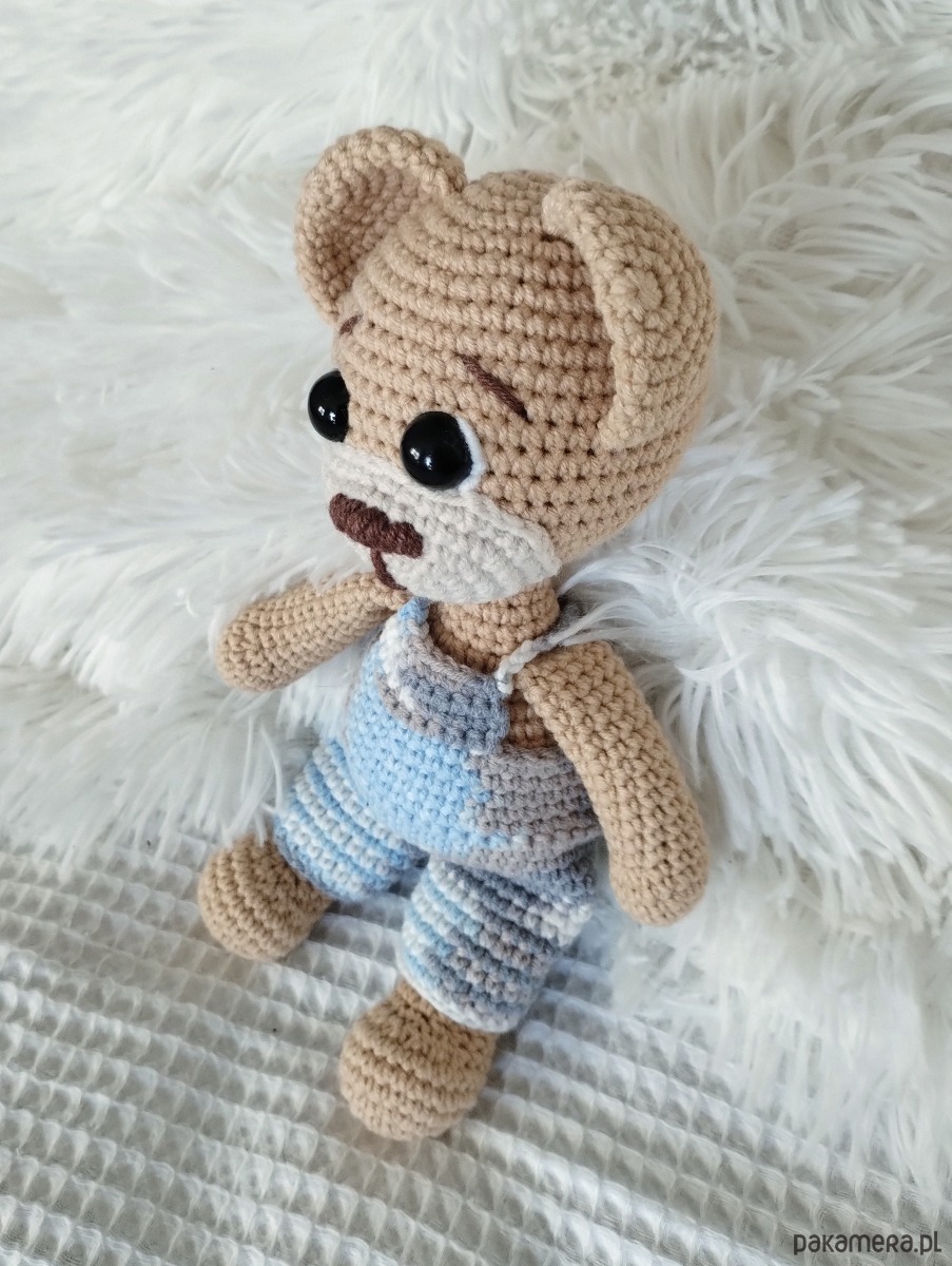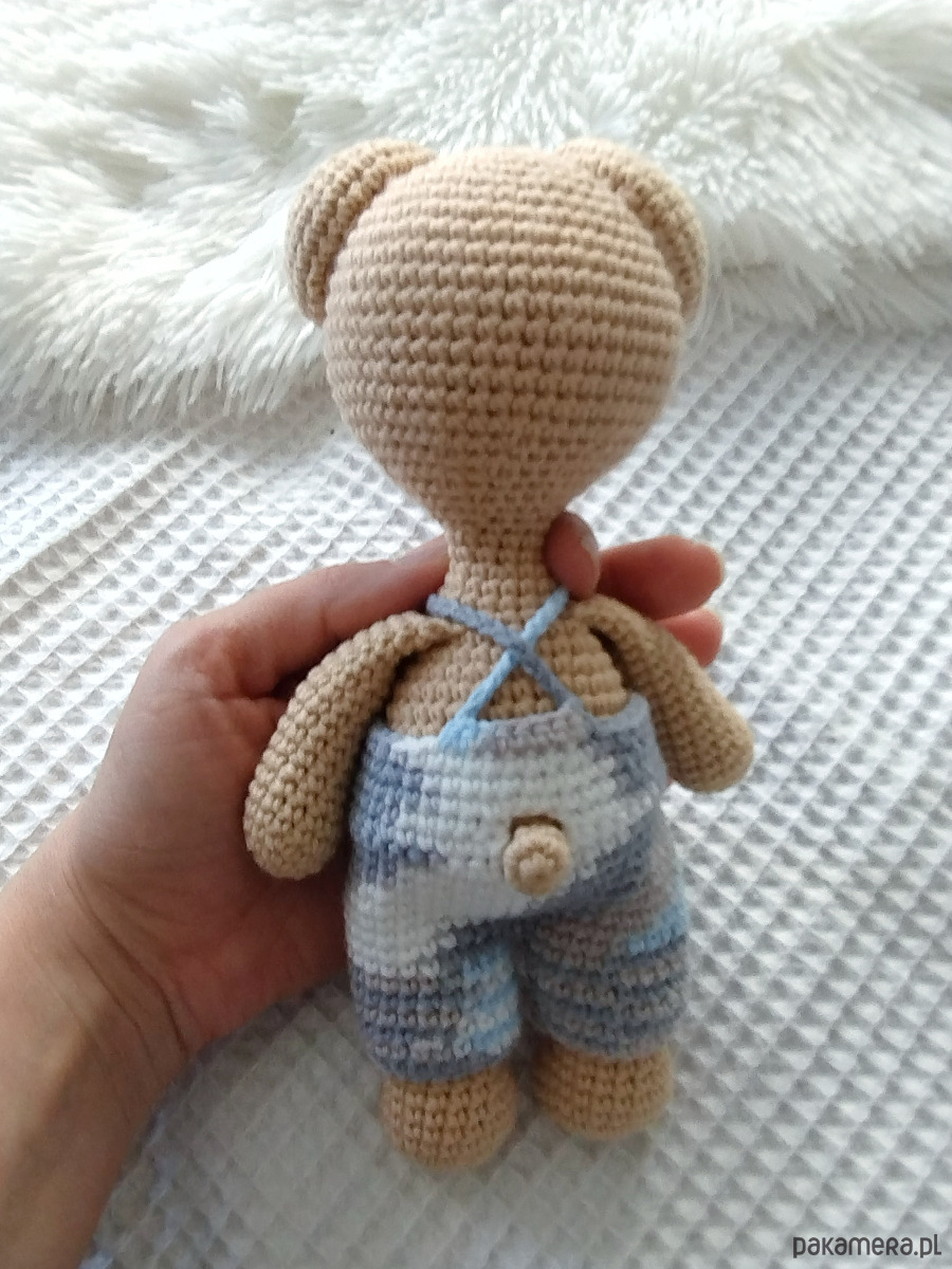 Szydełkowy miś w zdejmowanych spodniach to urocza zabawka dla każdego malucha.