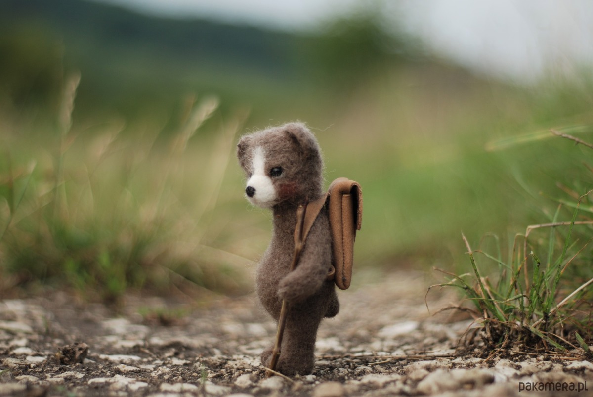 Miś wykonany metodą filcowania na sucho z wełny merynos.