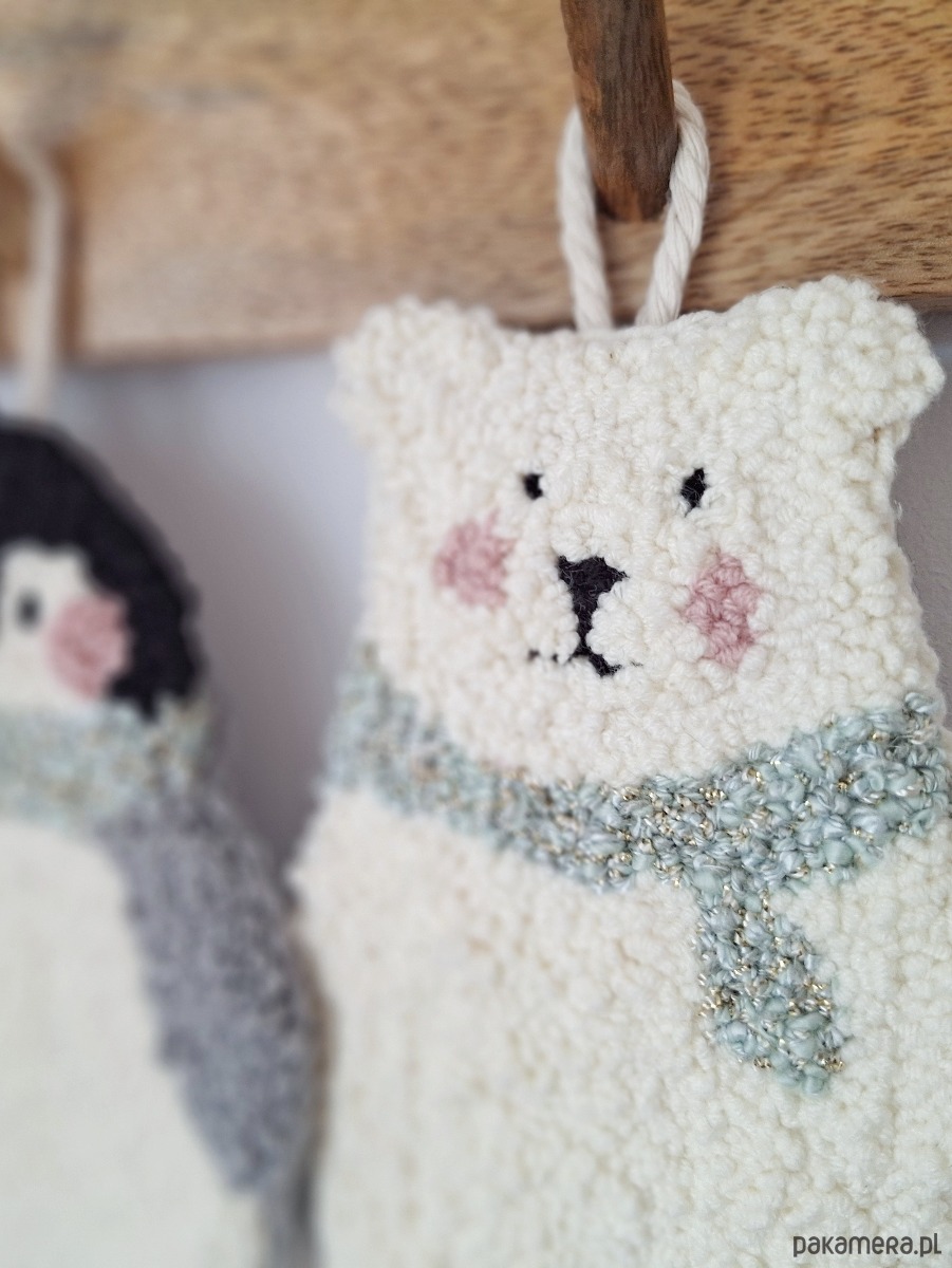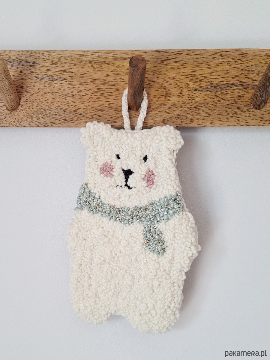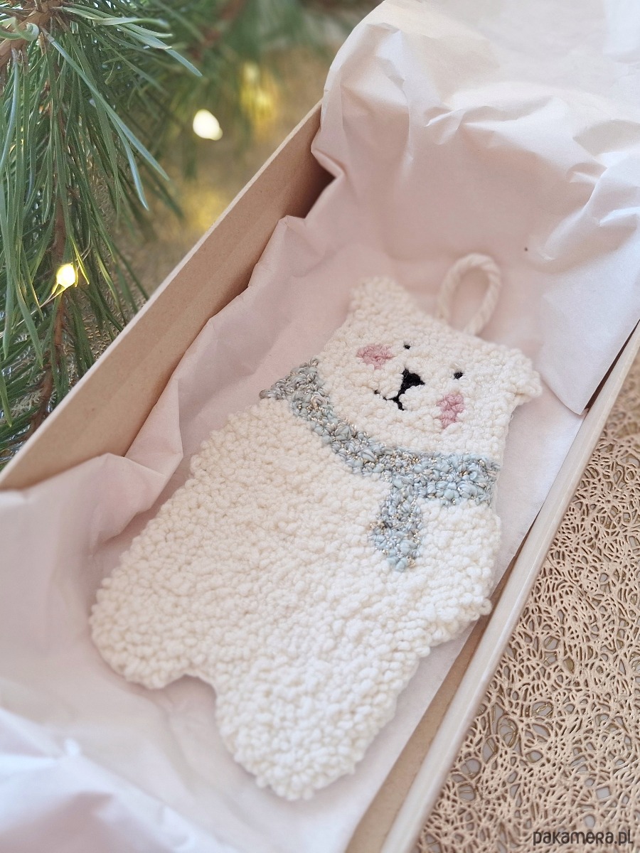 Zimowy akcent, który tworzy klimat – delikatne, stonowane barwy sprawiają, że ozdoba świetnie wpisuje się w sezon zimowy, a jednocześnie pozostaje uniwersalna przez cały rok. Miś doskonale komponuje się z drewnianymi meblami, lnianymi tekstyliami i pastelowymi dodatkami, tworząc spokojną i ciepłą przestrzeń.
