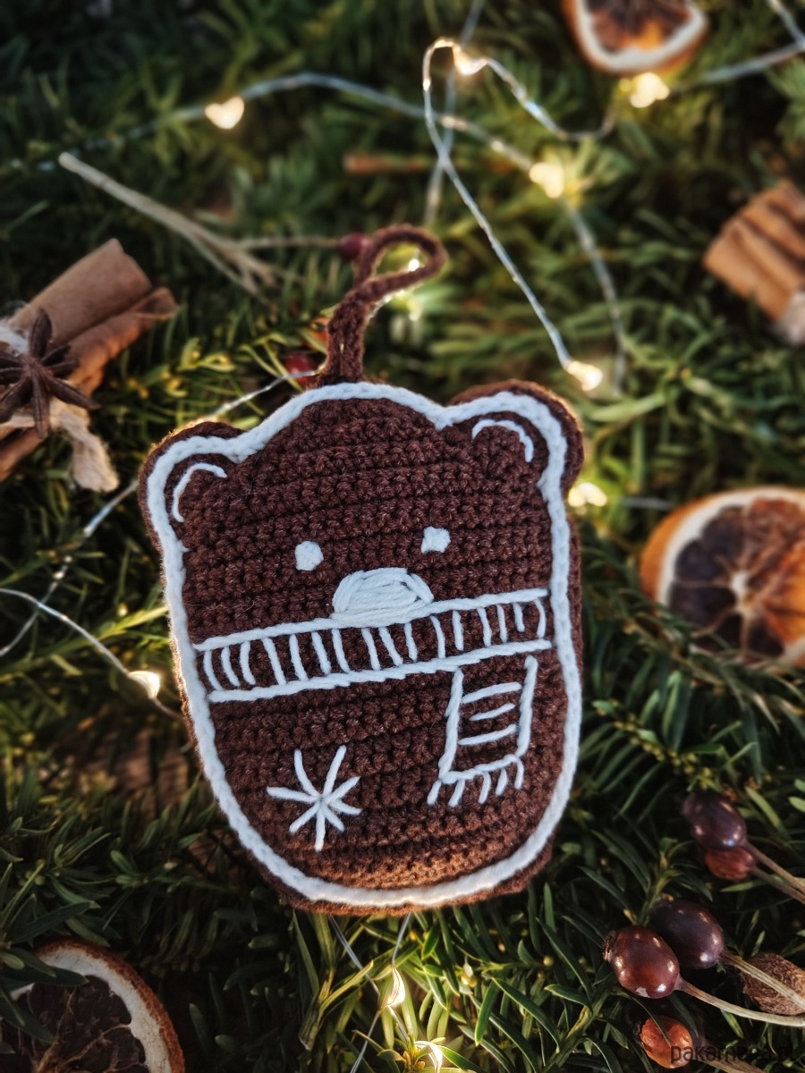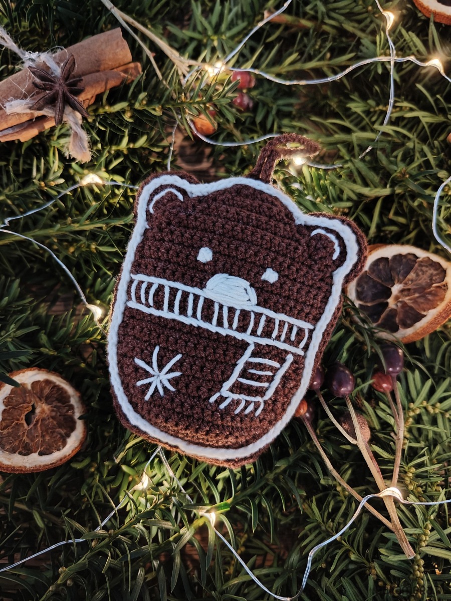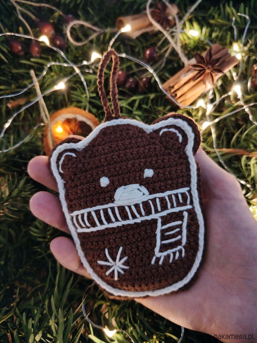 Szydełkowy pierniczek w kształcie Misia to oryginalna zawieszka na Twoją choinkę lub niepowtarzalny świąteczny prezent dla blikiej osoby i pamiątka na lata.