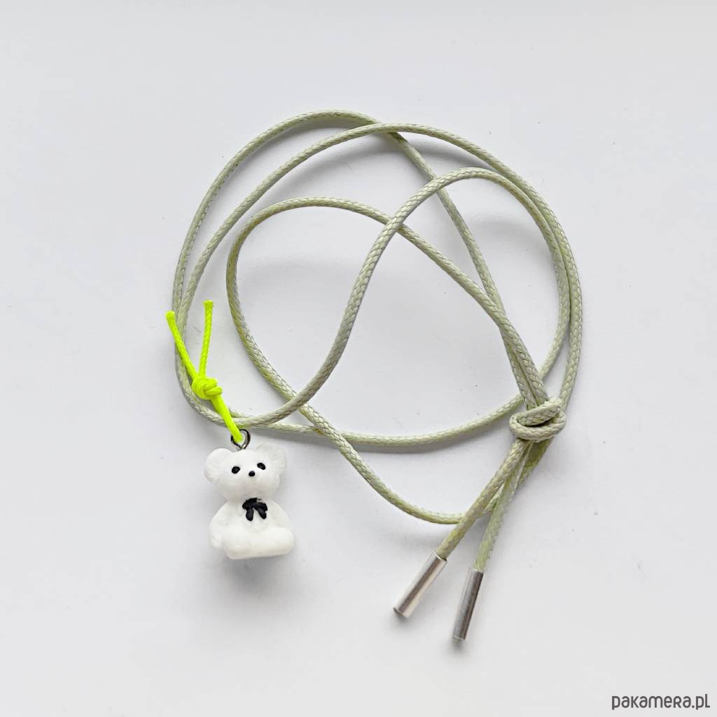 MIŚ wisiorek uroczy design. Nietuzinkowy dodatek idealnie stanowi uzupełnienie swobodnych, casualowych stylizacji. Wisiorek wykonany są z : akrylowa zawieszka- miś – (15 X 22 mm), ozdobny sznurek, srebro pr. 925. Ten niebanalny drobiazg na pewno wywoła uśmiech na Twojej twarzy.
