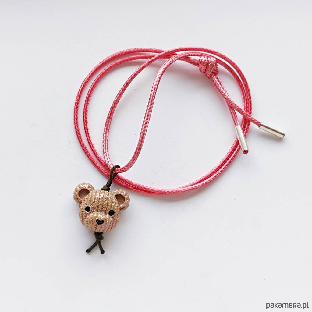 MIŚ wisiorek uroczy design. Nietuzinkowy dodatek idealnie stanowi uzupełnienie swobodnych, casualowych stylizacji. Wisiorek wykonany są z : koralik akrylowy – miś – (23X 19 mm), ozdobny sznurek, srebro pr. 925. Ten niebanalny drobiazg na pewno wywoła uśmiech na Twojej twarzy.