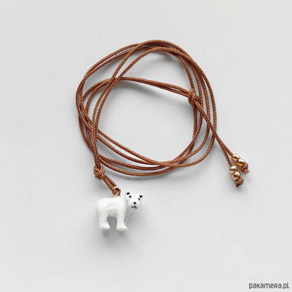 MIŚ wisiorek uroczy design. Nietuzinkowy dodatek idealnie stanowi uzupełnienie swobodnych, casualowych stylizacji. Wisiorek wykonany są z : emaliowana zawieszka- miś – (16 X 14 X 7 mm), ozdobny sznurek, szklane koraliki. Ten niebanalny drobiazg na pewno wywoła uśmiech na Twojej twarzy.wisiorek doda uroku każdej stylizacji.