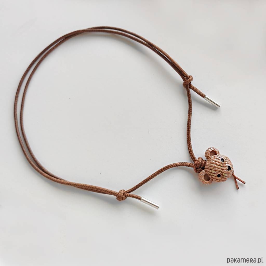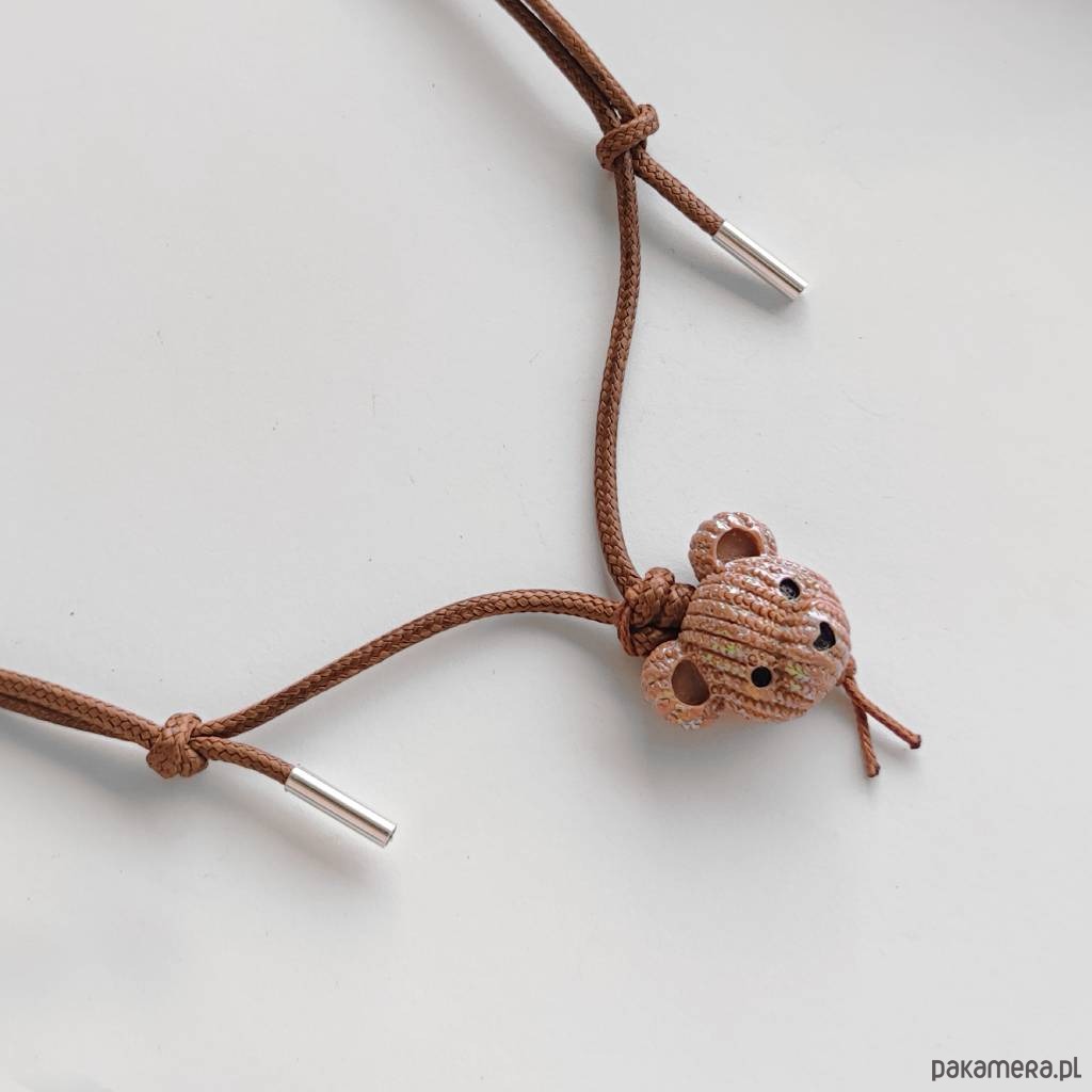 MIŚ wisiorek uroczy design. Nietuzinkowy dodatek idealnie stanowi uzupełnienie swobodnych, casualowych stylizacji. Wisiorek wykonany są z : koralik akrylowy – miś – (23X 19 mm), ozdobny sznurek, srebro pr. 925. Ten niebanalny drobiazg na pewno wywoła uśmiech na Twojej twarzy. Wisiorek jest oryginalny.