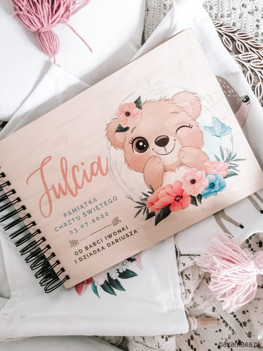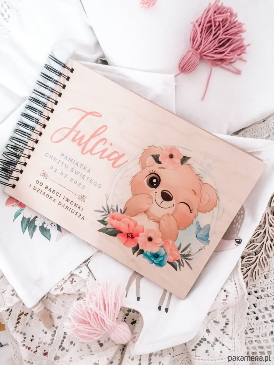 MIŚ Z KWIATAMI prezent album pamiątka chrztu, narodzin, urodzin