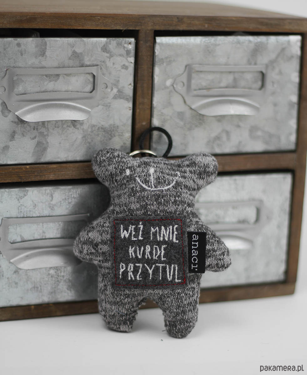 Misio Zdzisio mierzy sobie 11 cm., zaopatrzony w filcową plakietkę z wyhaftowaną dedykacją.