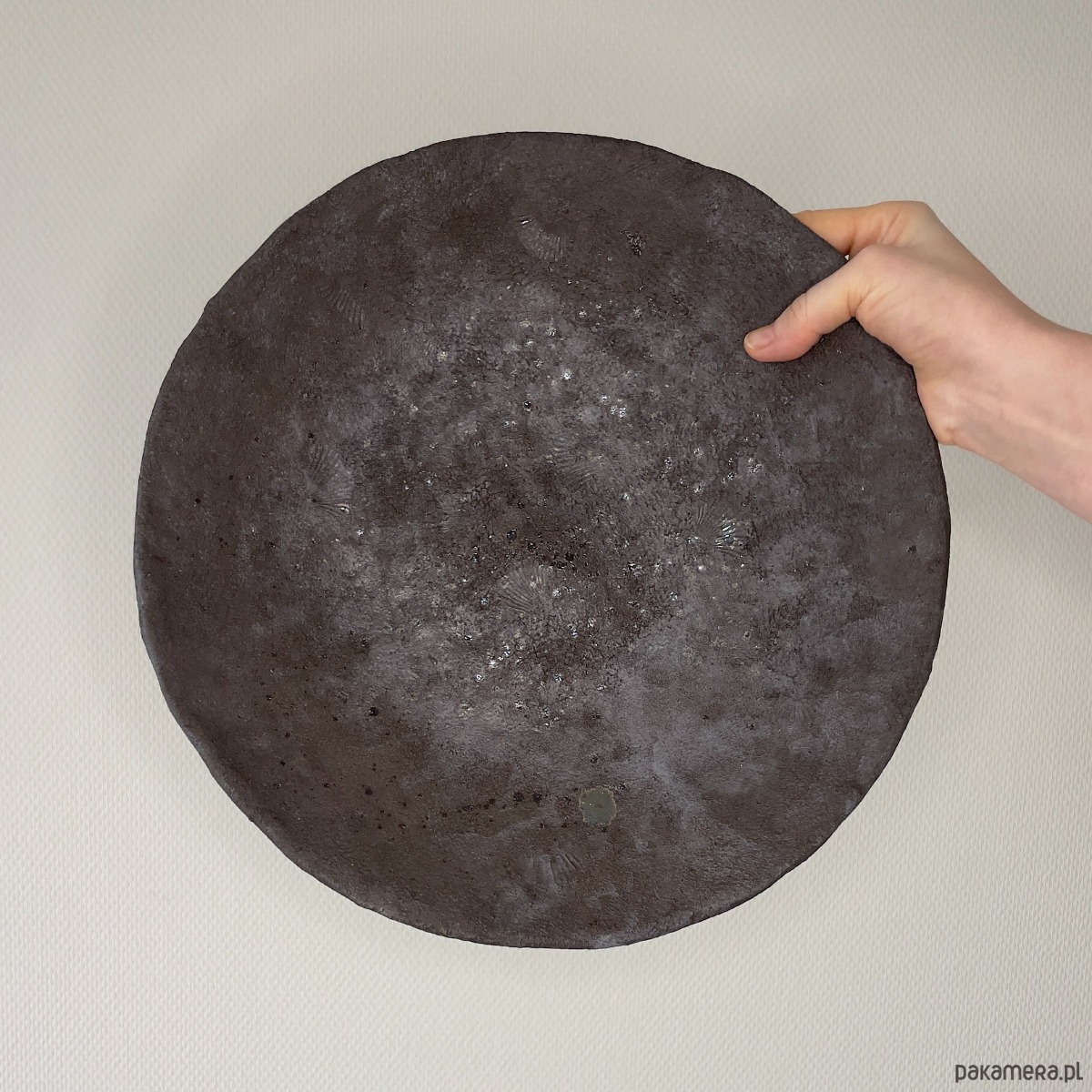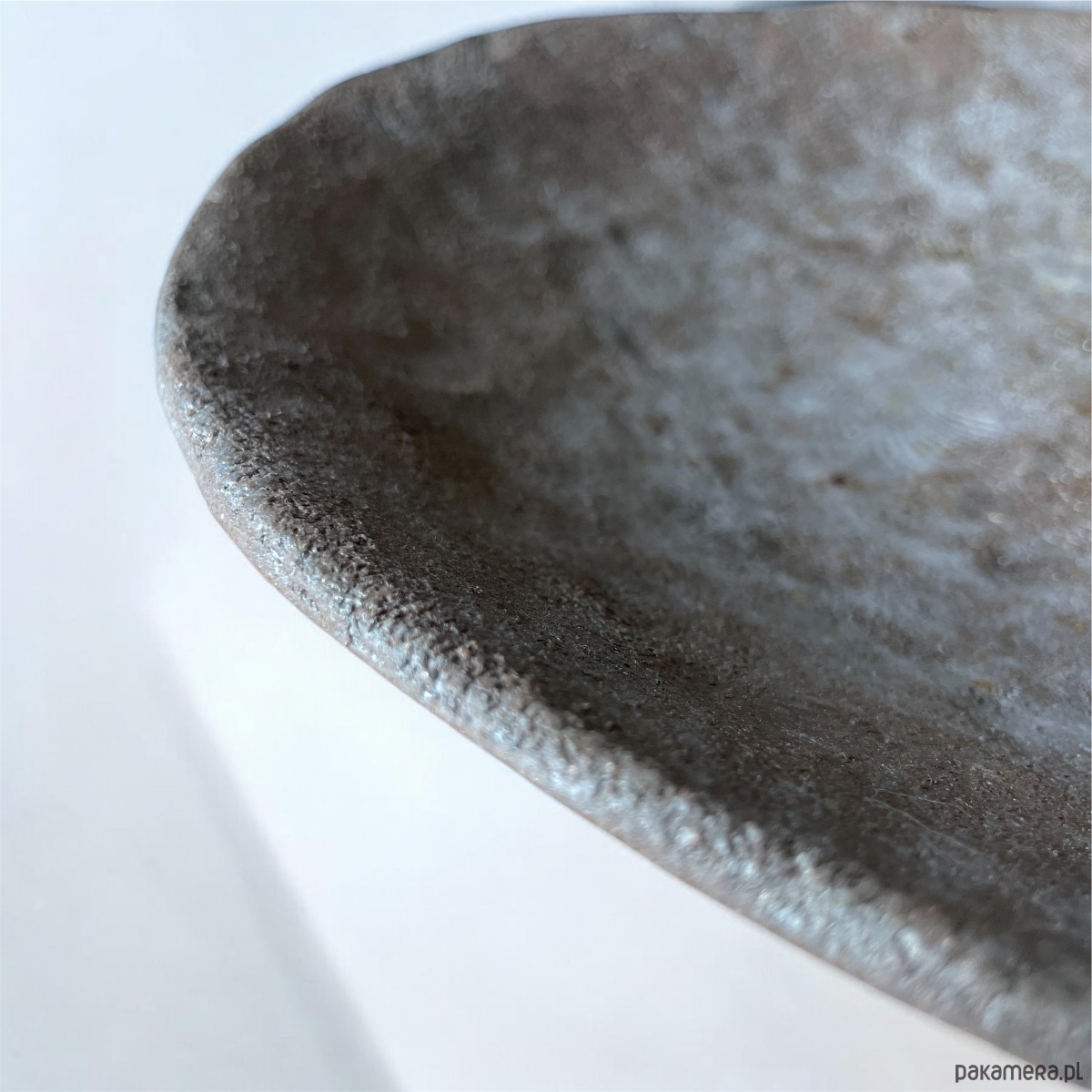 Ręcznie formowana misa z gliny w odcieniu szaro-brązowym z wyraźną strukturą ciemnego szamotu. Kolorystyka i faktura nawiązuje do morskich kamieni znalezionych na plaży. Kamienie na plaży mają piękne kształty, kolory i wzory. Mogą przypominać nam o wspaniałej różnorodności przyrody. Wyczuwalne drobiny szamotu "jakby piasku" dodają dynamiki i autentycznego charakteru naczyniu, a naturalne kolory sprawiają, że idealnie pasuje do różnych wnętrz. Powierzchnia pokryta jest matowym przeźroczystym szkliwem. Misa może być umieszczona na stole, komodzie, czy półce jako samodzielna forma dekoracyjna lub aranżacyjna nadając wnętrzu stylu i charakteru. Może także posłużyć jako naczynie do eksponowania warzyw czy owoców.