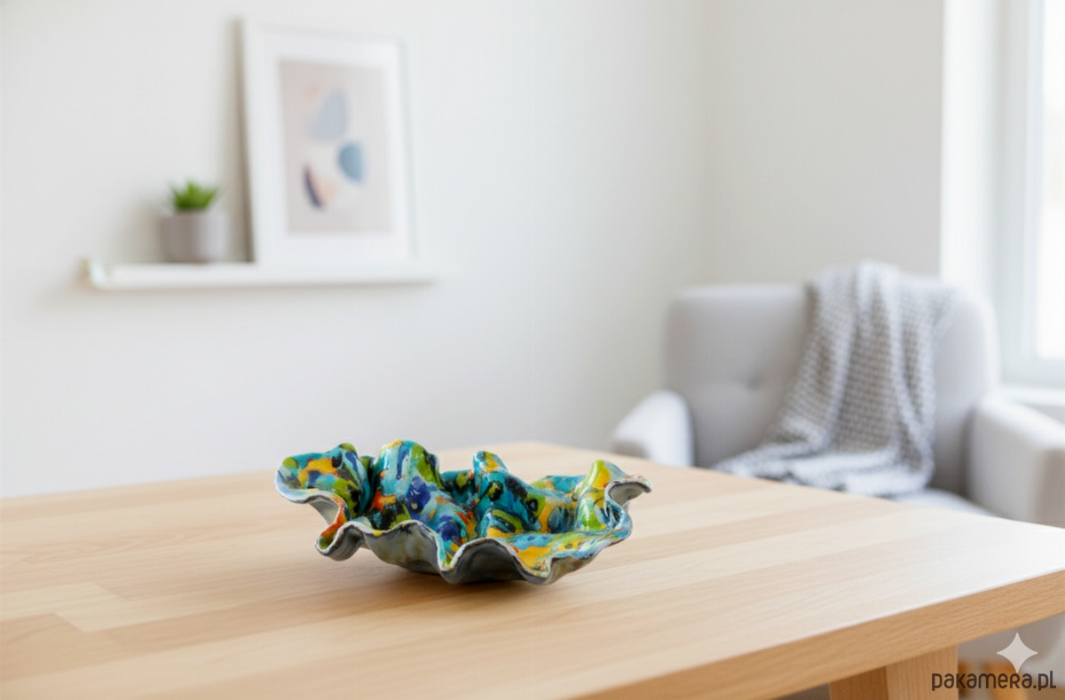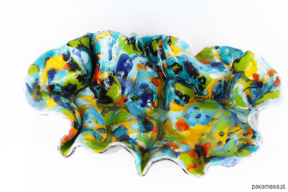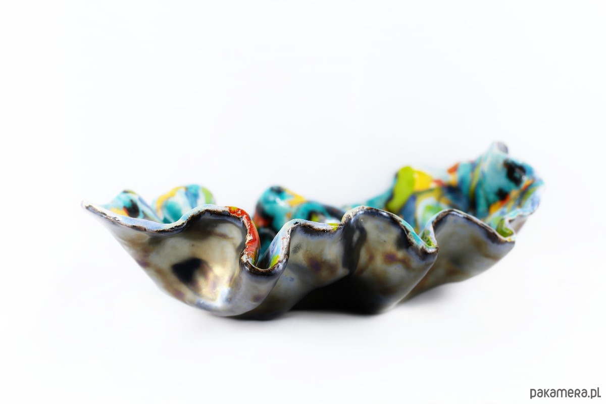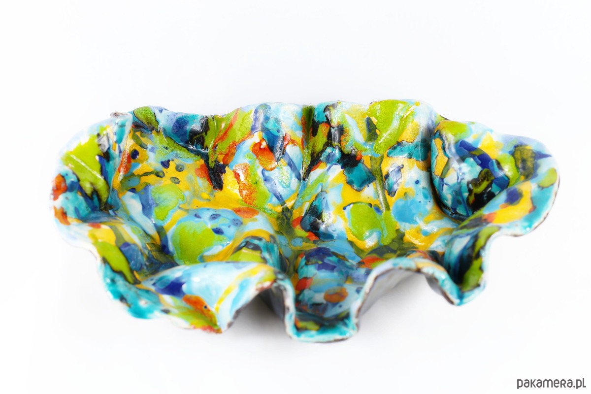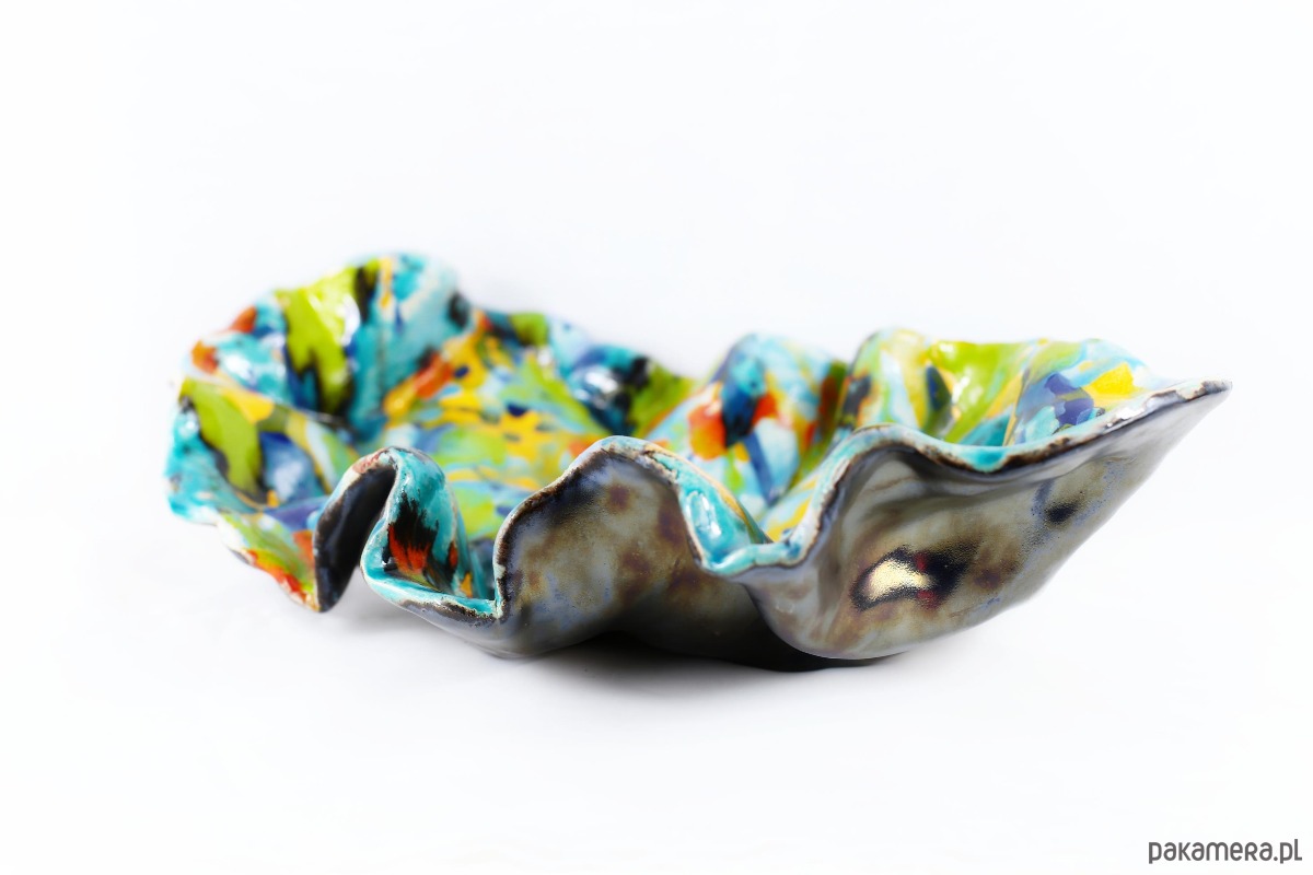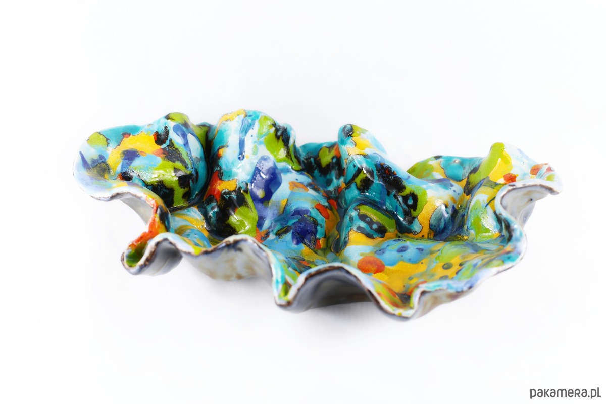Misa Feeria jest dziełem, które budzi skojarzenia z ekspresjonizmem. Styl ten kładzie nacisk na subiektywną ekspresję, emocje i unikanie tradycyjnych, perfekcyjnych form. Kształt jest organiczny i dynamiczny, daleki od geometrycznej symetrii a falujące, marszczone krawędzie sugerują ruch. Jest w tej misie energia natury pierwotnej – kipiący kocioł kolorów z dżungli, głębi oceanu i nieba. Jest odważna, radosna i zuchwała. To nie jest tylko naczynie użytkowe, ale mała, trójwymiarowa instalacja artystyczna, która wnosi do przestrzeni świeżość i wibrację, malarska miniatura 3D. Kolory tańczą i zderzają się, tworząc wibrujący fresk, który zmusza oko do ciągłego ruchu. Jest głośna i odważna, celebrująca nieład i niepowtarzalność każdej kropli glazury).